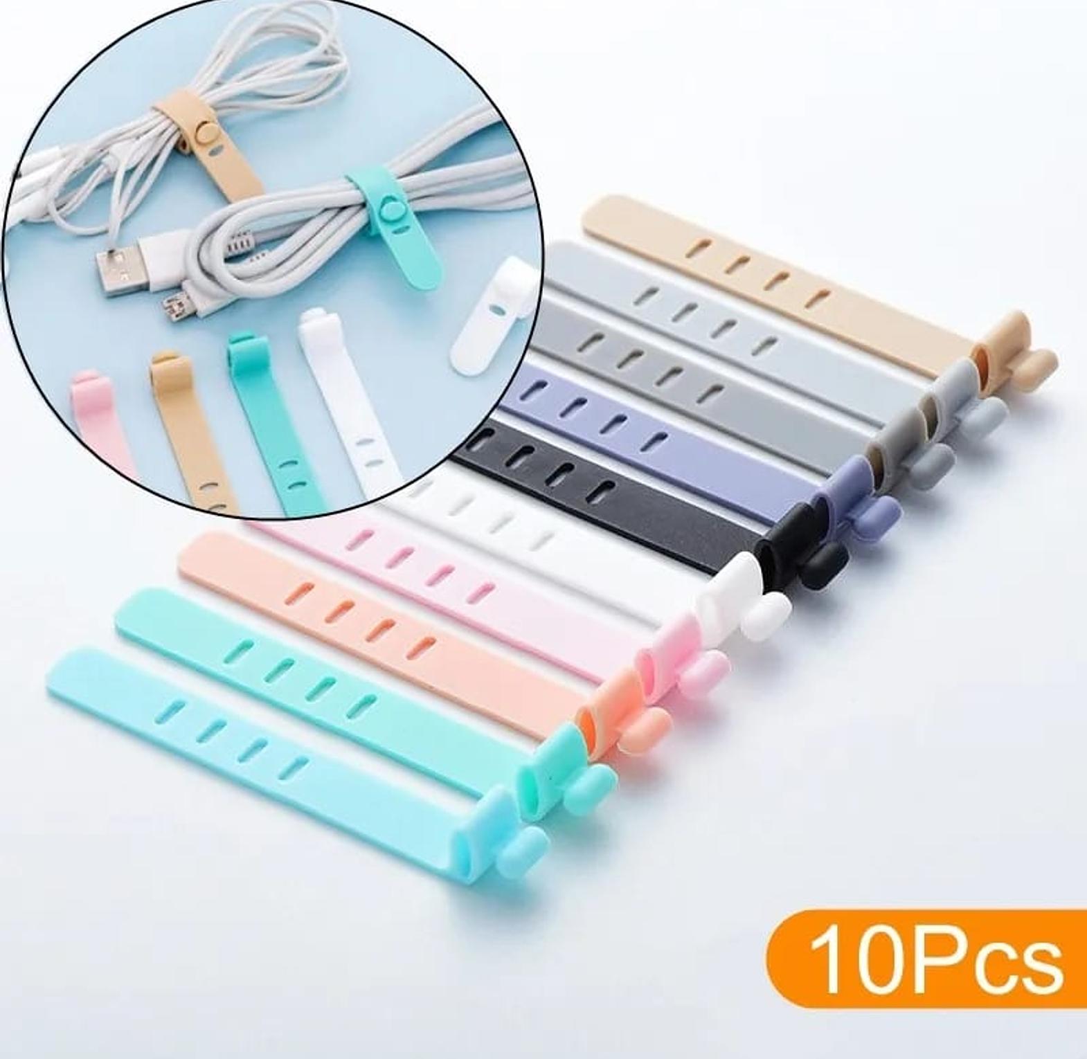 Silicone cable winders designed to keep your charging cables and earphones neatly organized and tangle-free.