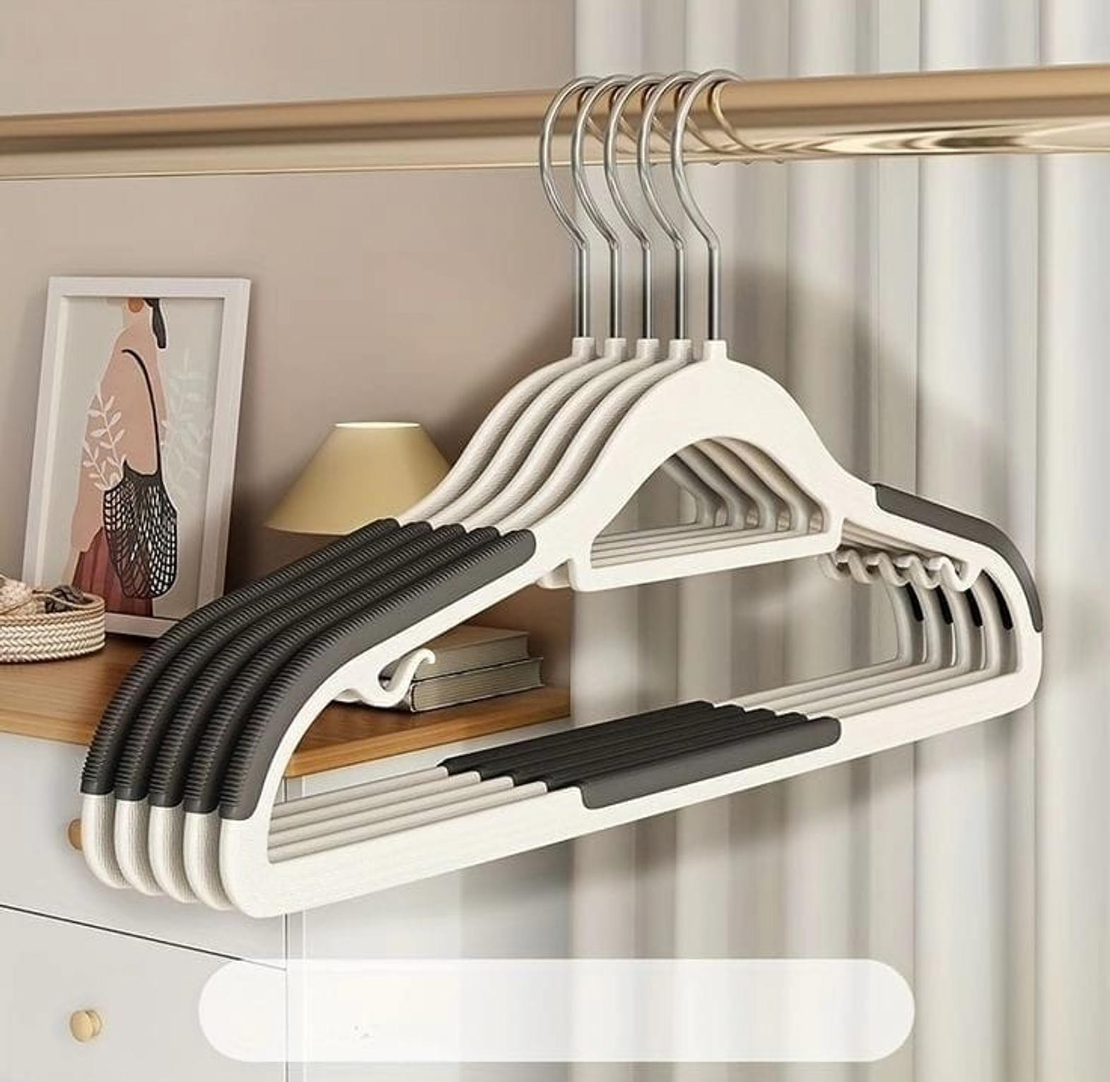 10pcs velvet hangers with non-slip surface and notched shoulders. Strong and space-saving.