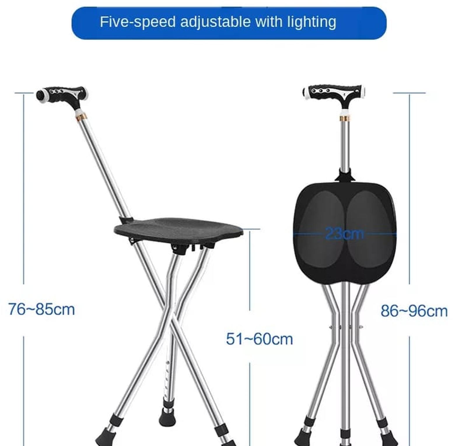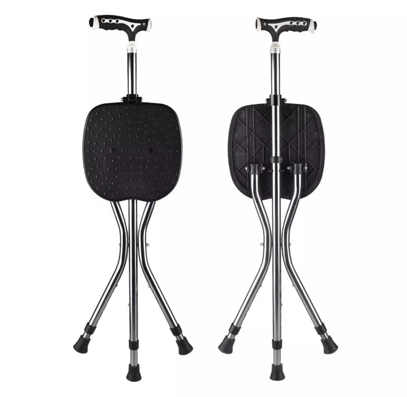 Strong and reliable walking stick that easily converts into a seat, offering support and comfort for seniors during walks or outdoor activities.