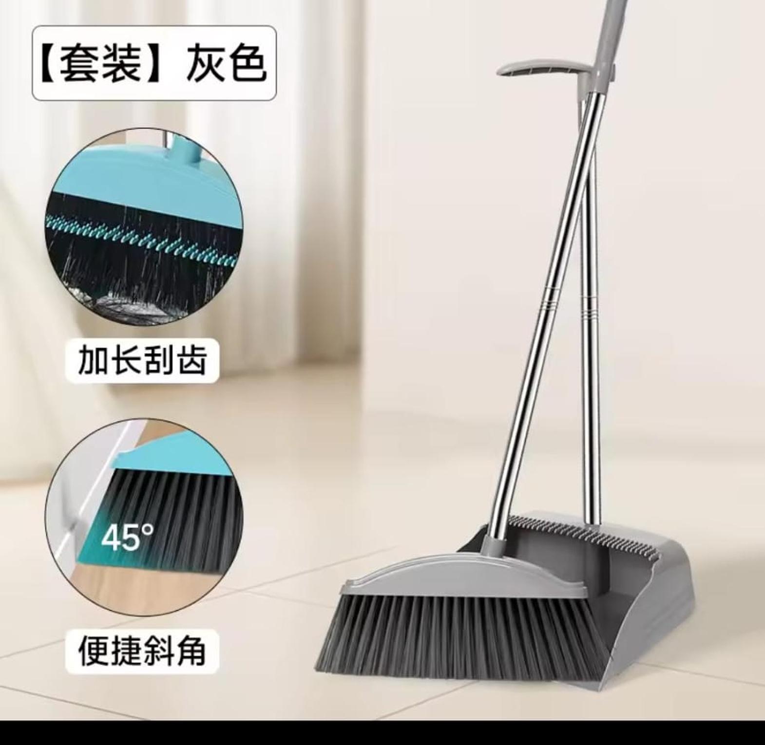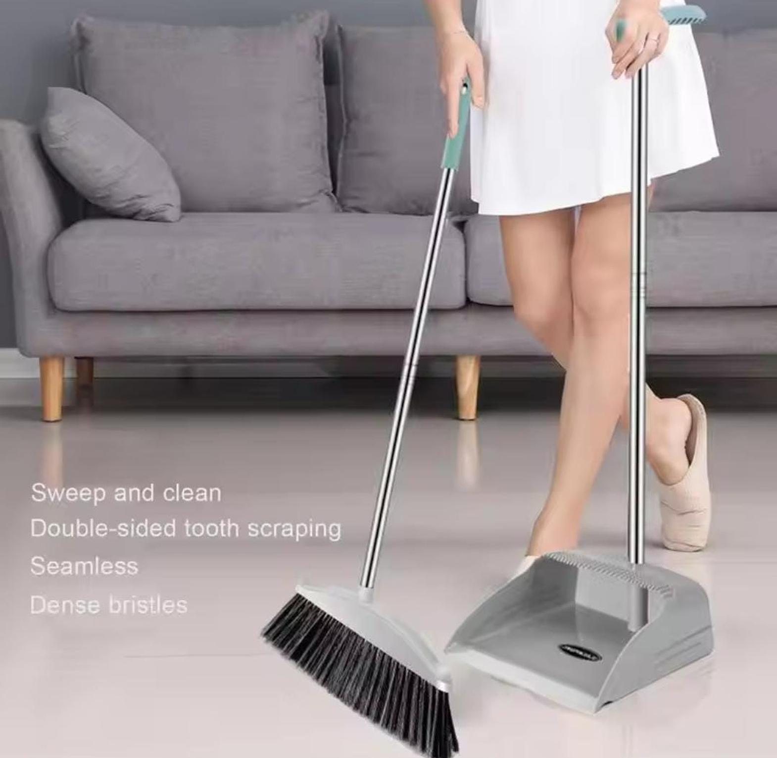 2-in-1 flexible broom and dustpan for easy, efficient cleaning. Available in grey.