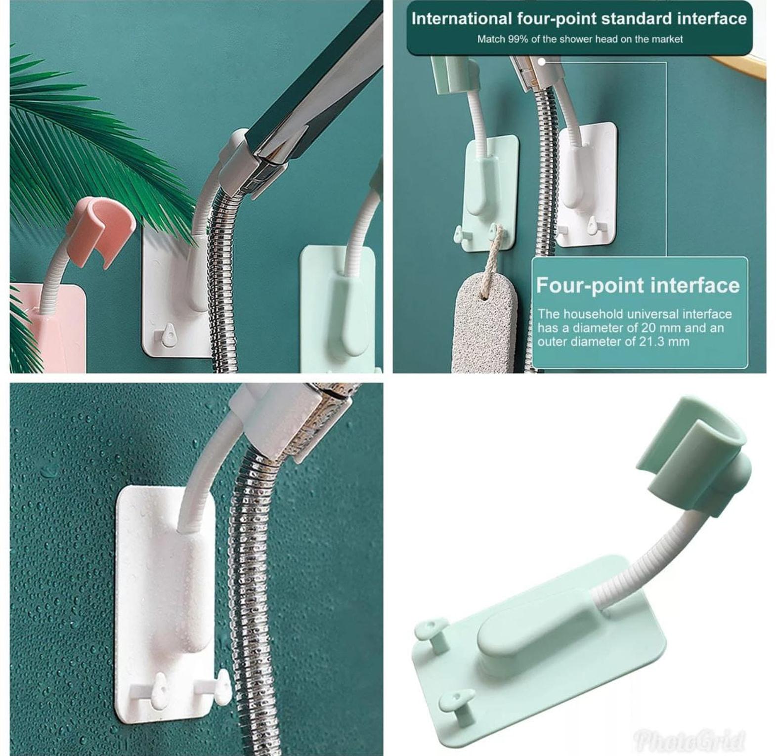 Adjustable shower holder that rotates 360 degrees, allowing flexible positioning of the shower head.
