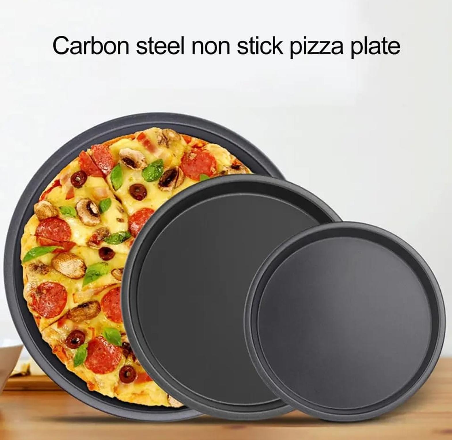 3pcs non-stick pizza pans set (6”, 8”, 10”).