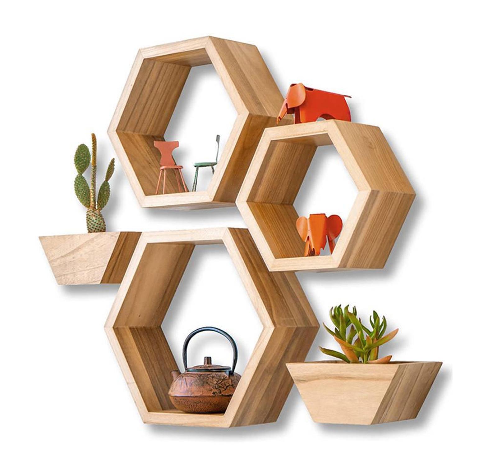 5-in-1 wooden floating shelves with hooks.