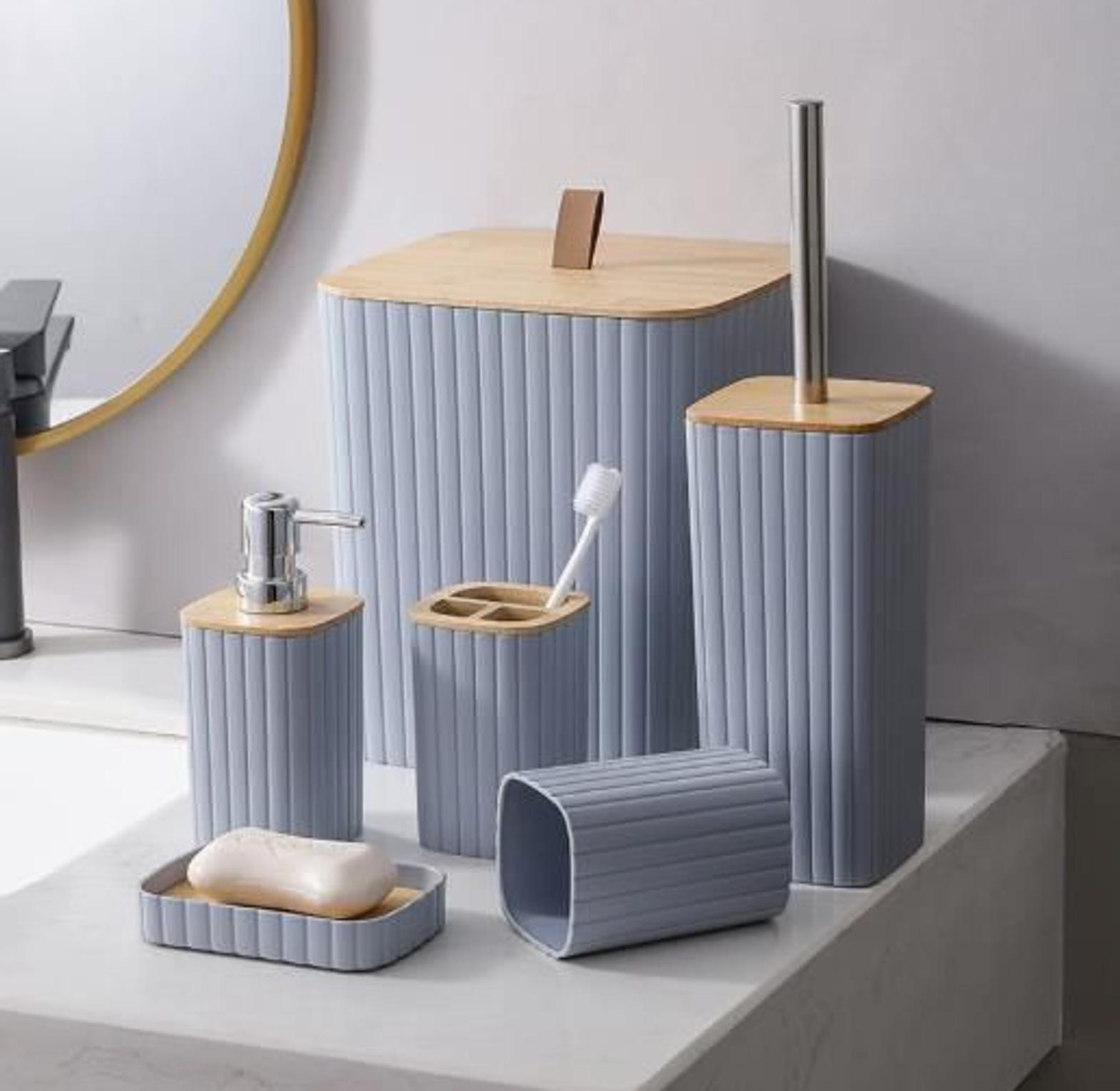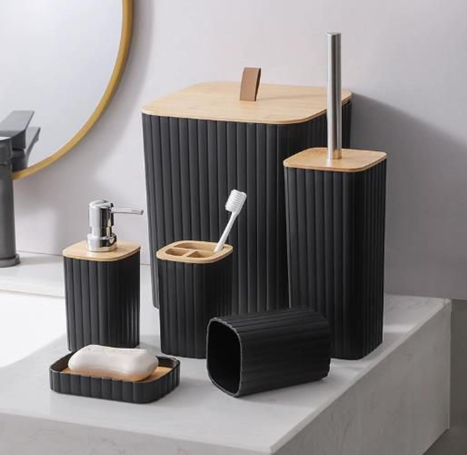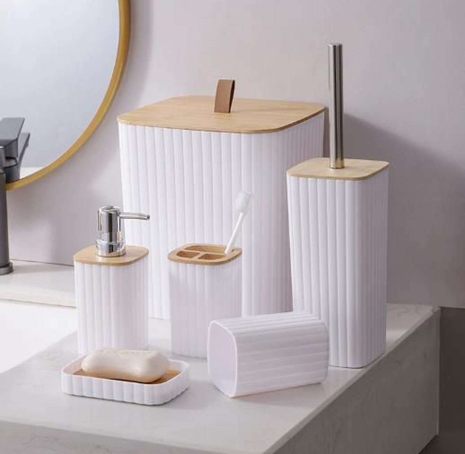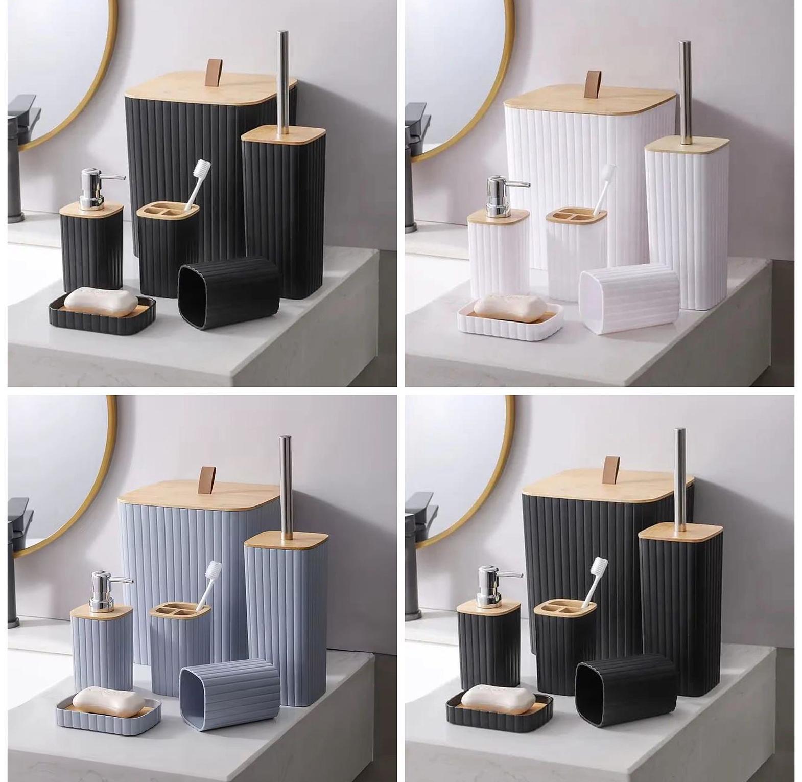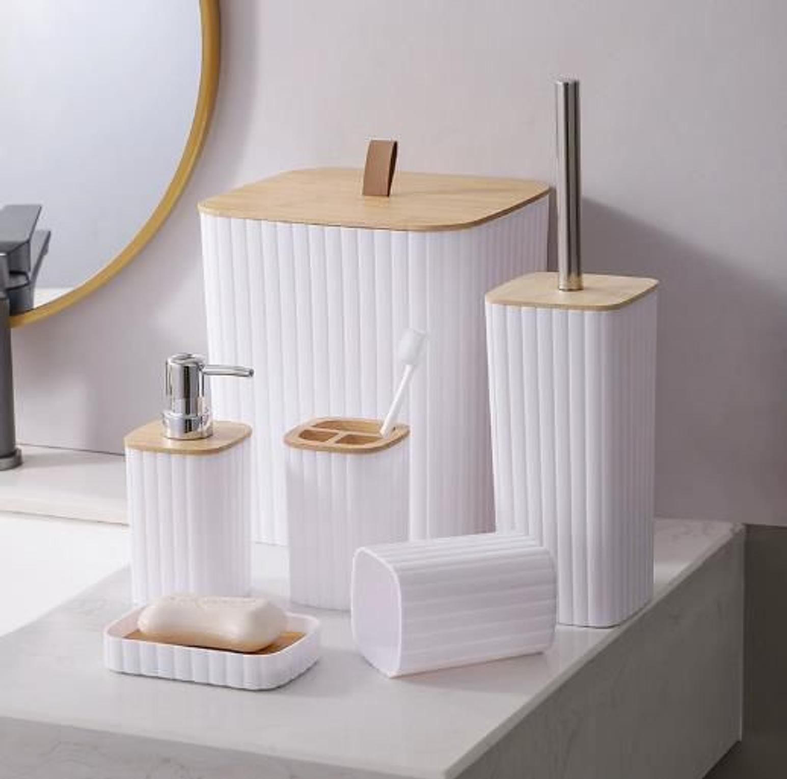 6 in luxury bathroom accessories set with bamboo lid