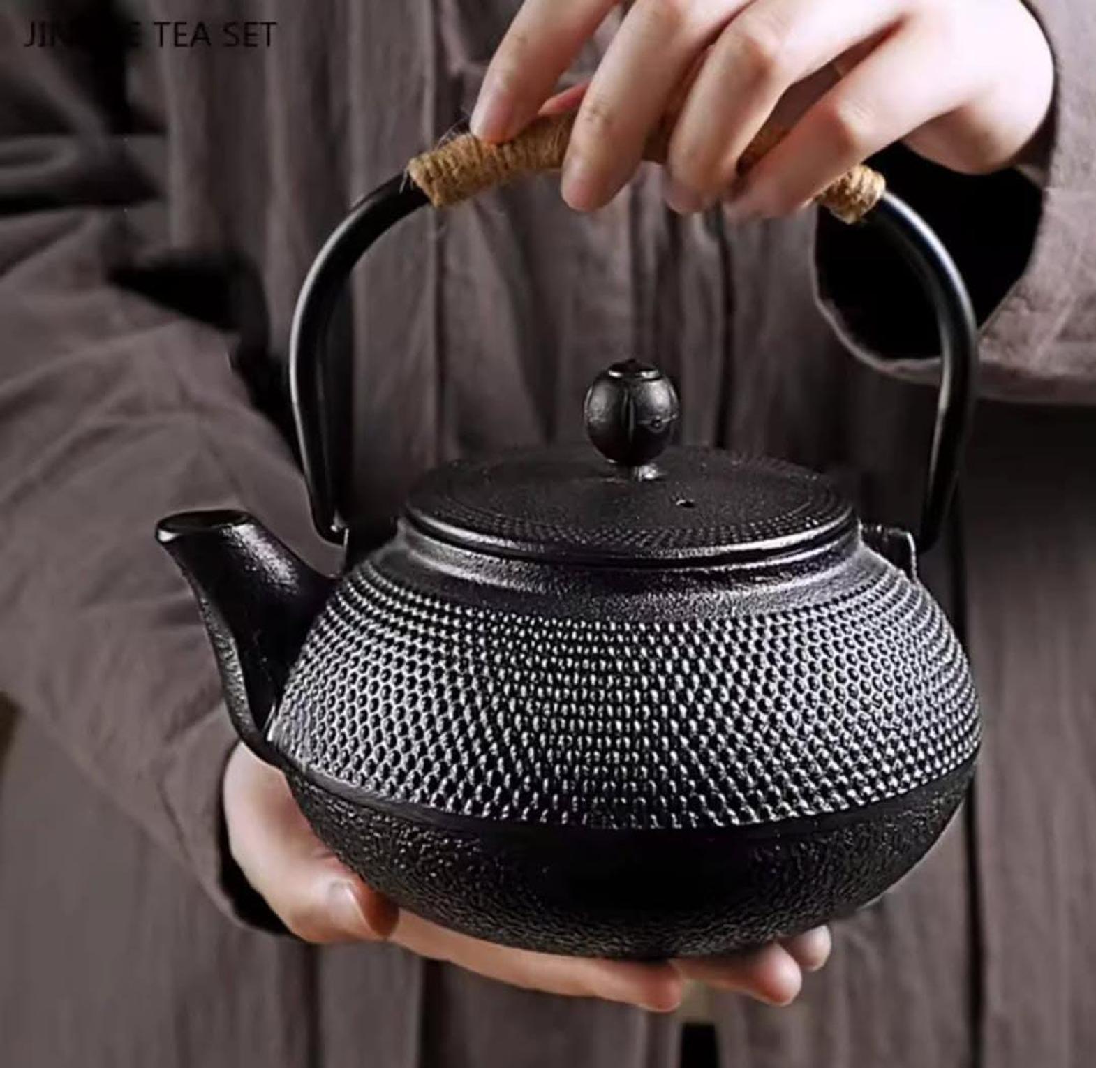 This 900ml cast iron Japanese tetsubin teapot is a durable, enamel-coated kettle designed for brewing tea evenly while preserving traditional style and heat retention.