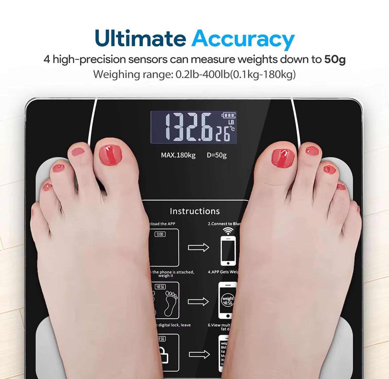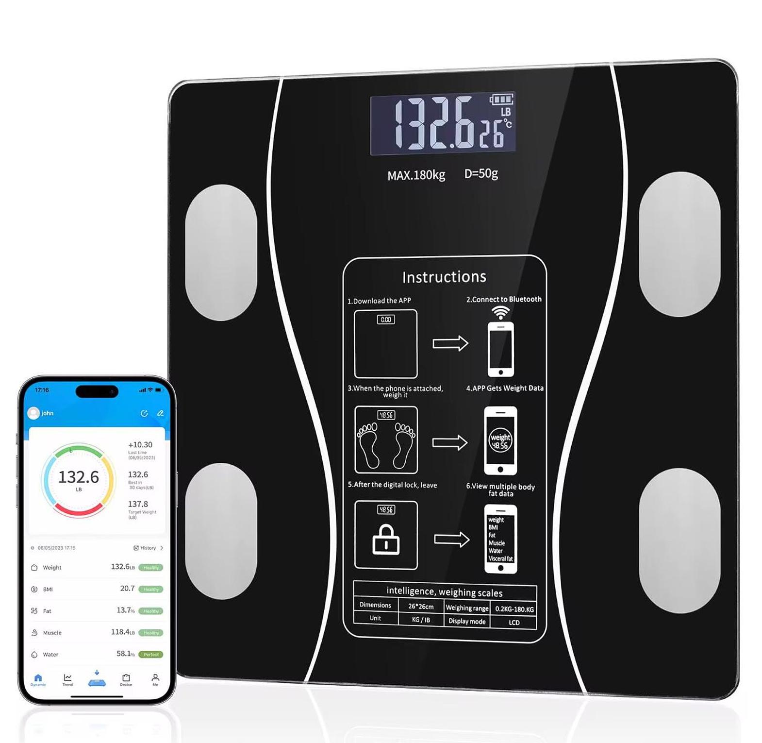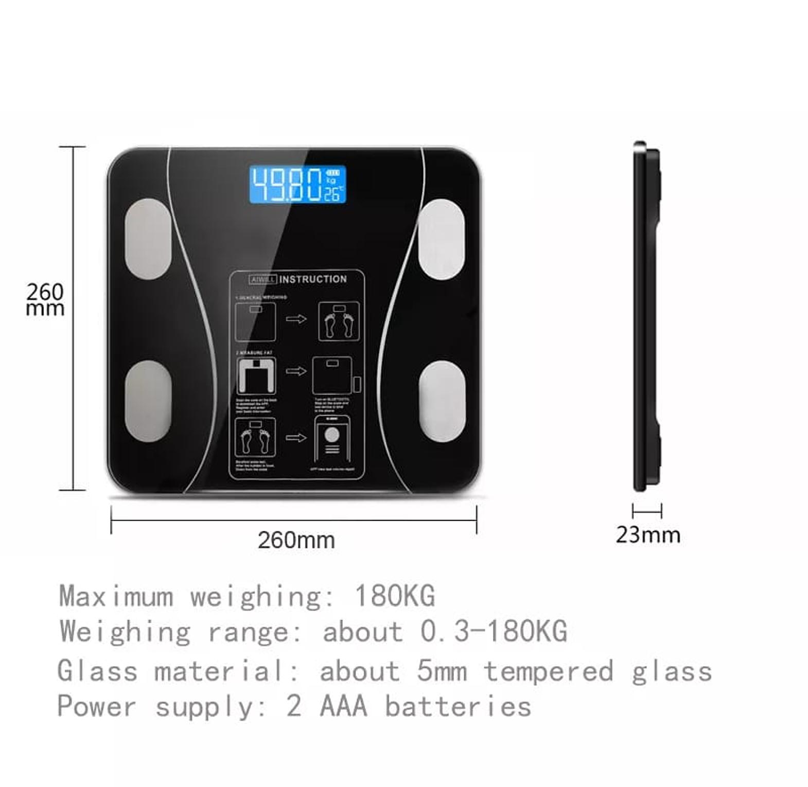 Smart BMI body scale with OKOK app. Measures body fat, muscle, BMI and more. Battery operated with free batteries.