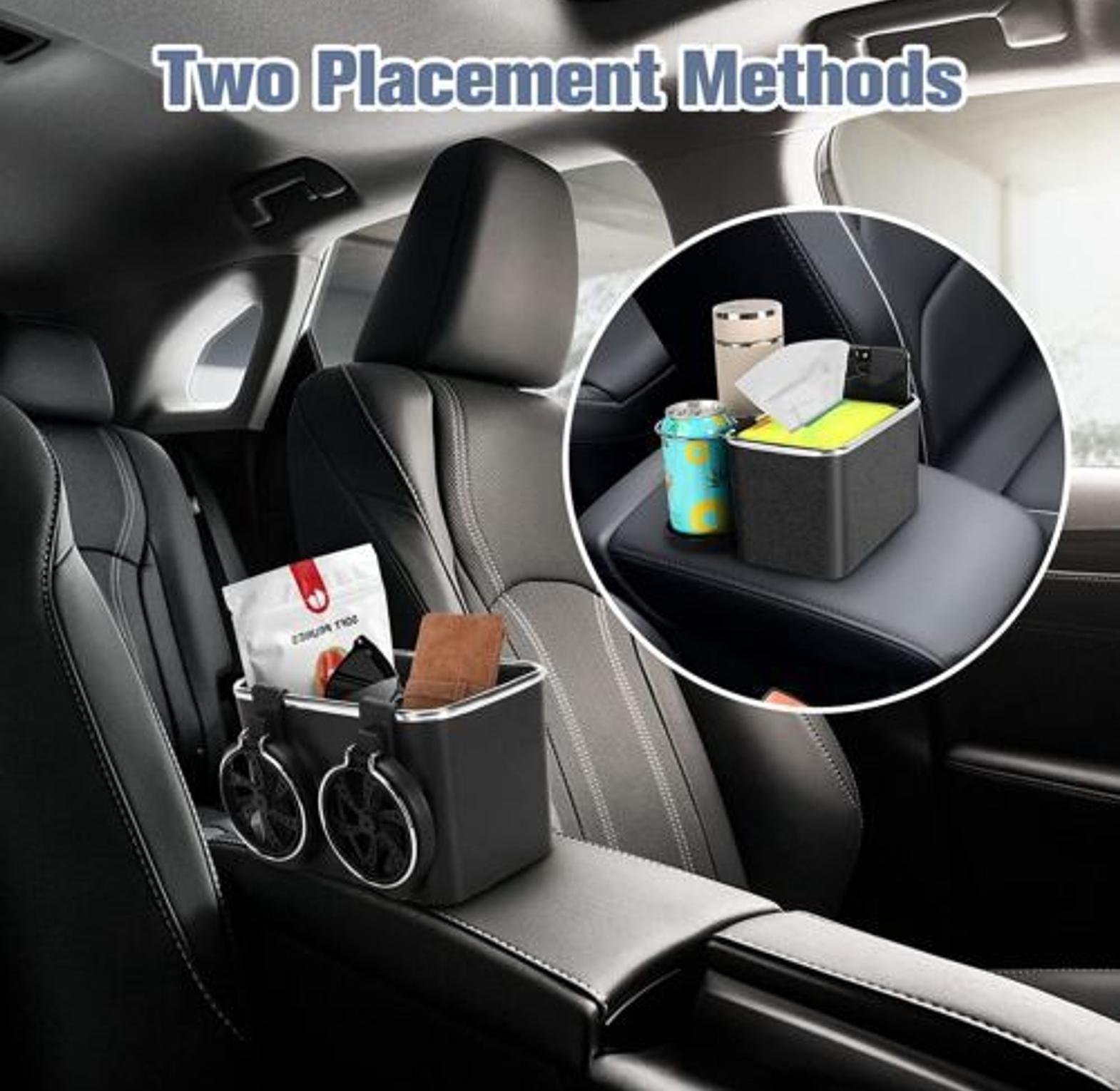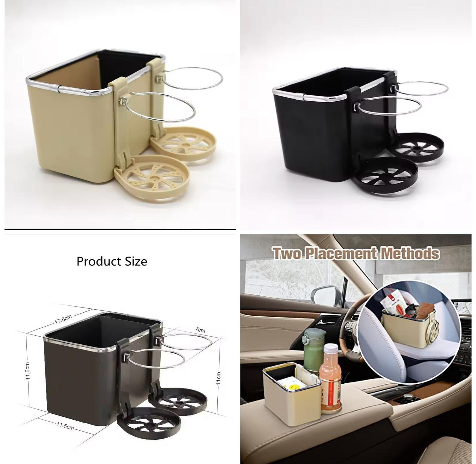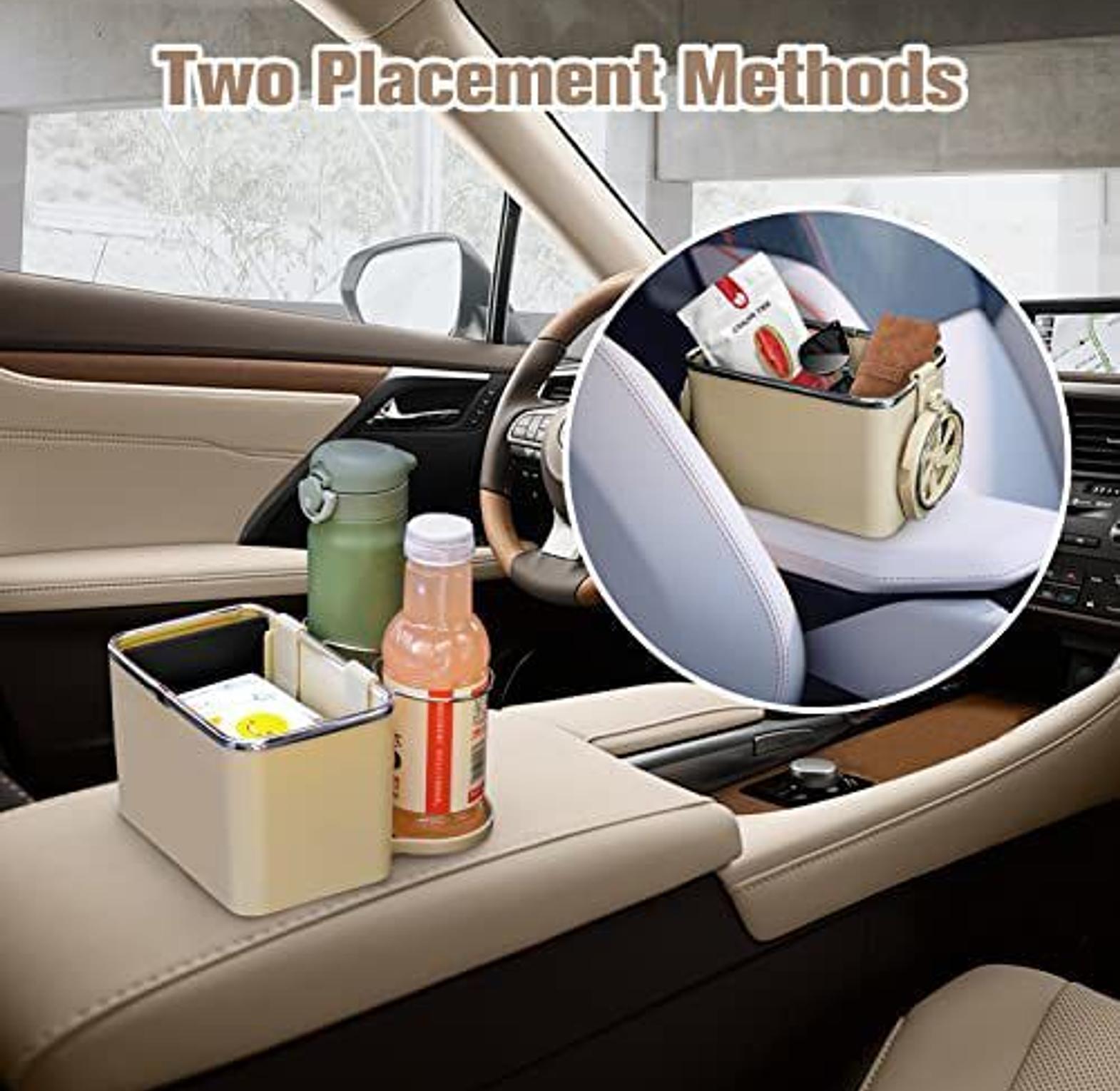 Car armrest organizer with phone slot and 2 bottle holders. Brown color.