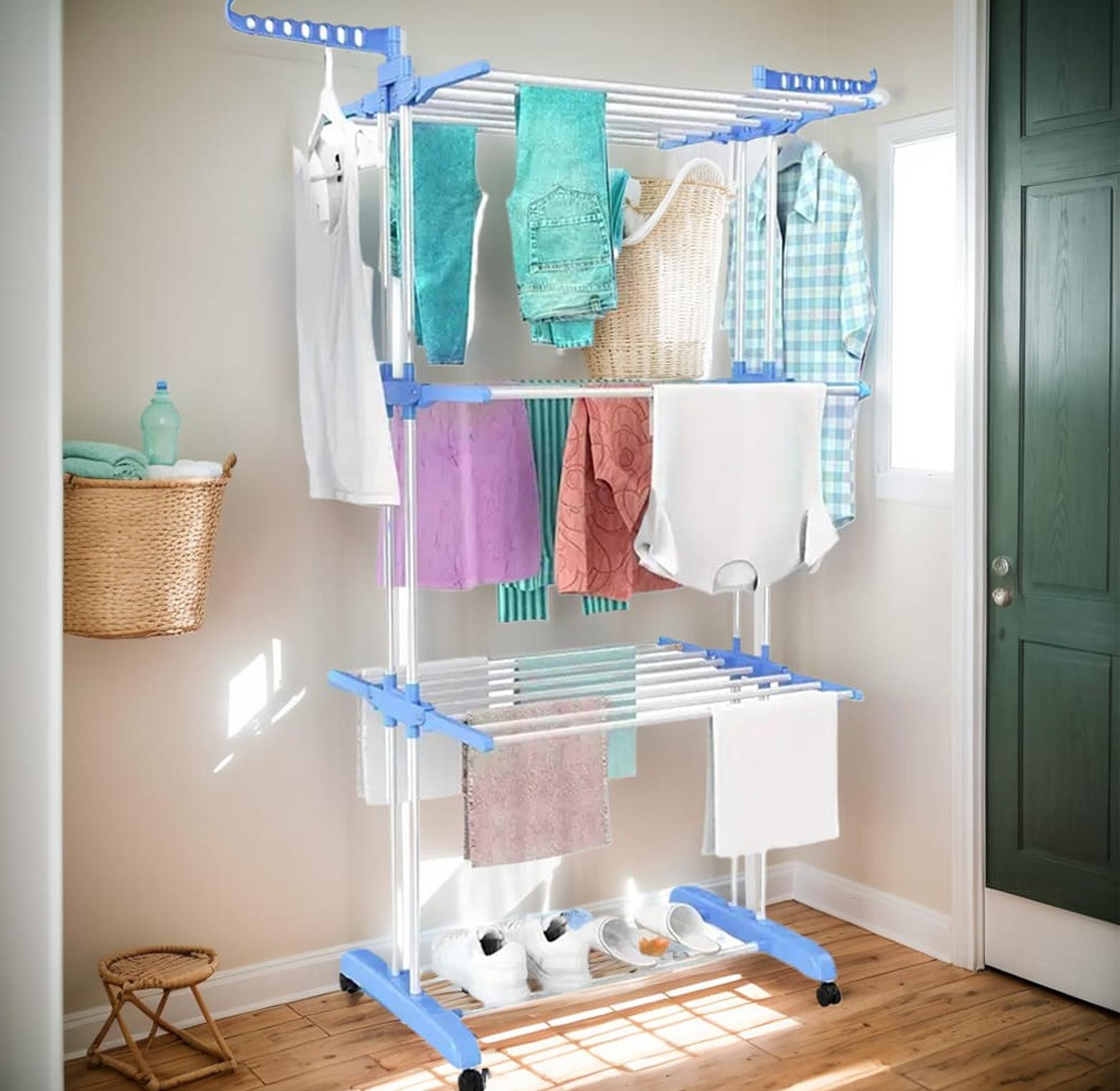 3-layer detachable clothes hanger rack with 50KG capacity. Strong and spacious.
