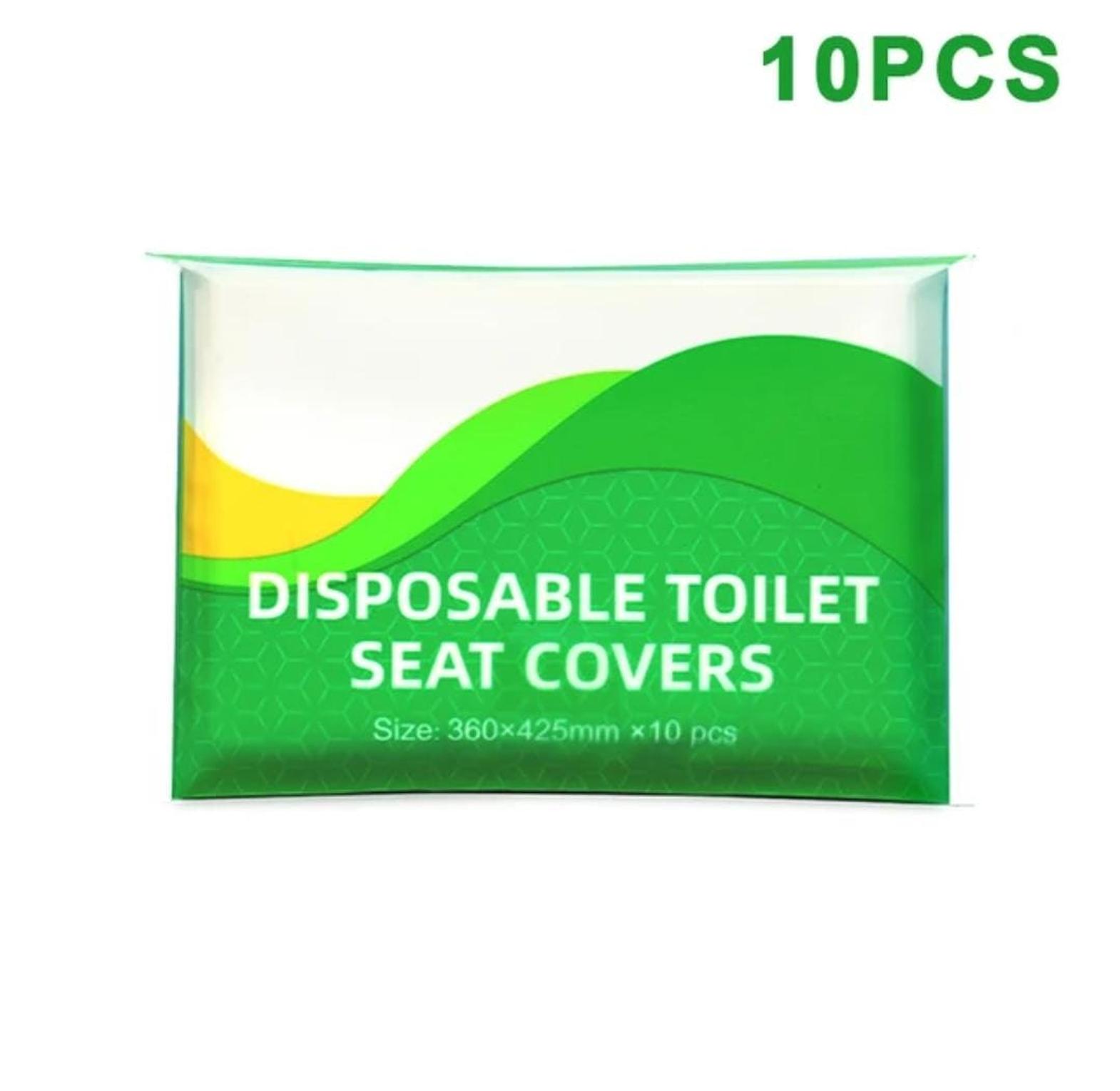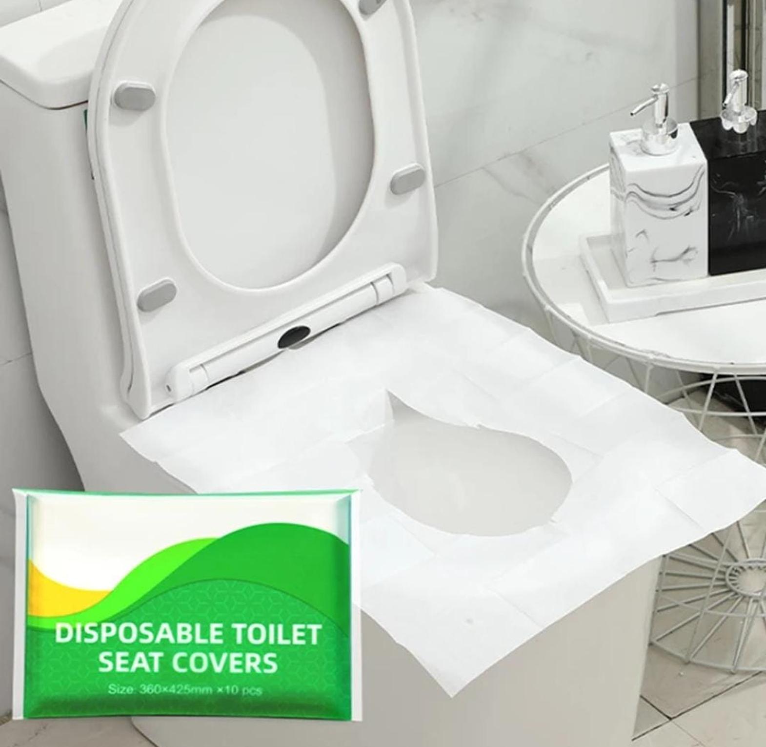 Portable disposable toilet seat covers made from wood pulp paper for safe and hygienic use while traveling or in public toilets.