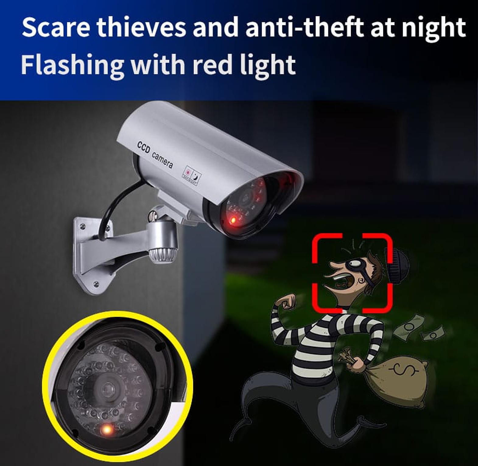 Powered by AA batteries, it is easy to install anywhere without wiring. Ideal for homes, offices, shops, or outdoor areas, this fake CCTV camera helps deter potential intruders and enhance security awareness. Lightweight, low-maintenance, and effective, it provides an affordable way to simulate a professional surveillance system.