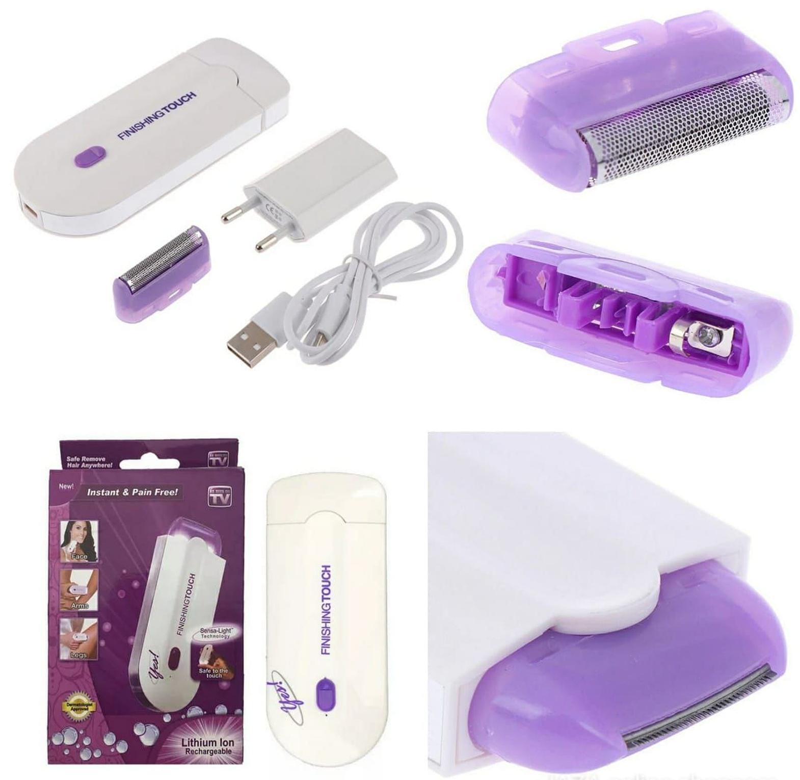 Rechargeable electric hair remover designed for painless and precise hair removal on face, body, legs, and bikini areas.