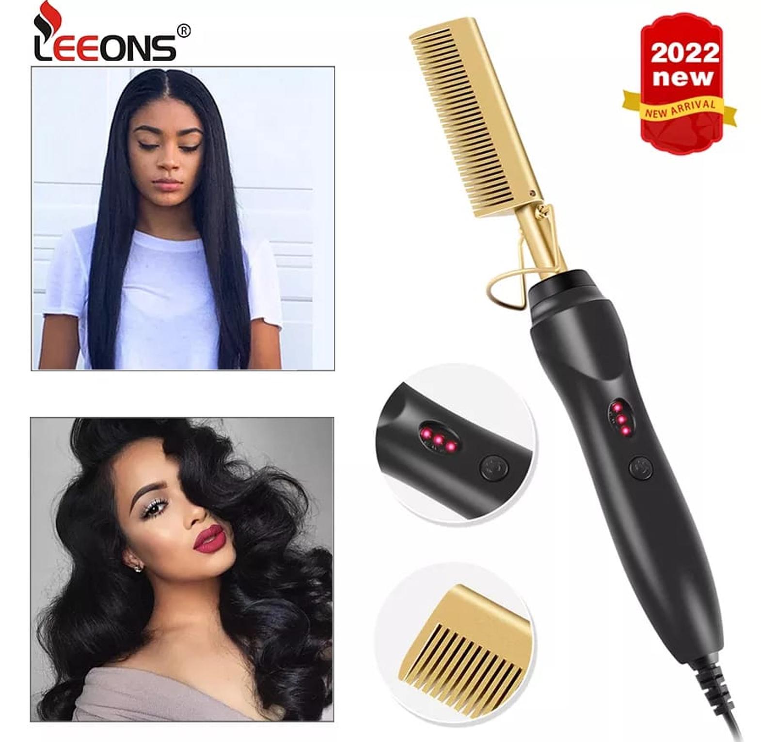 Electric heat-adjustable hot comb designed for safe and effective hair straightening.