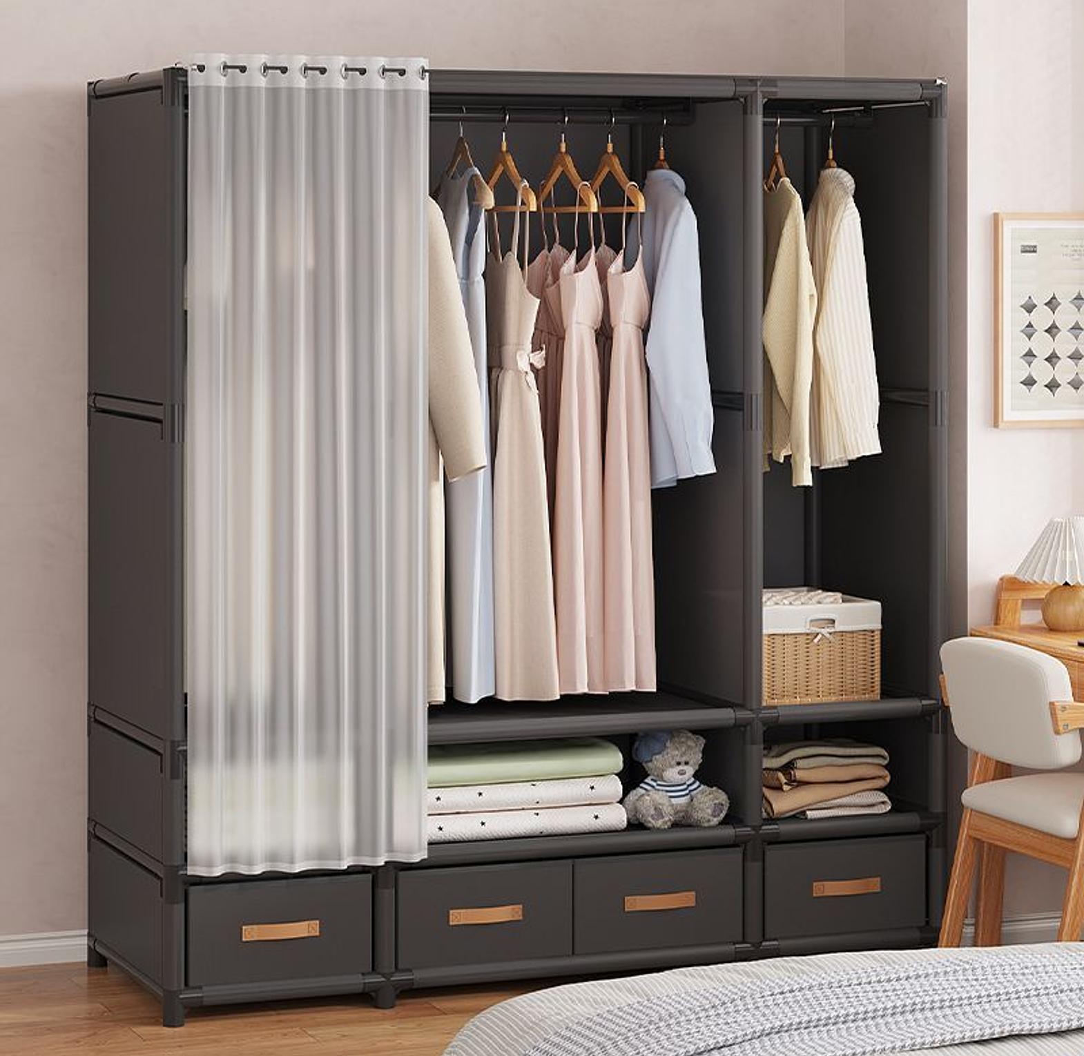 The elegant heavy-duty metallic wardrobe is a strong, spacious, and stylish storage solution designed to keep clothes, shoes, and essentials well organized for long-term use.