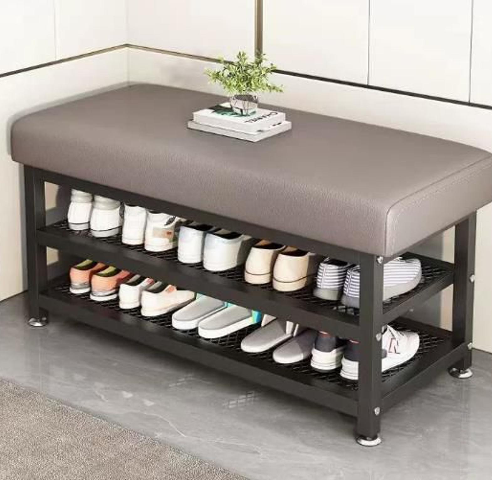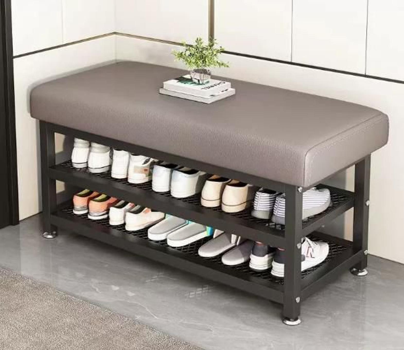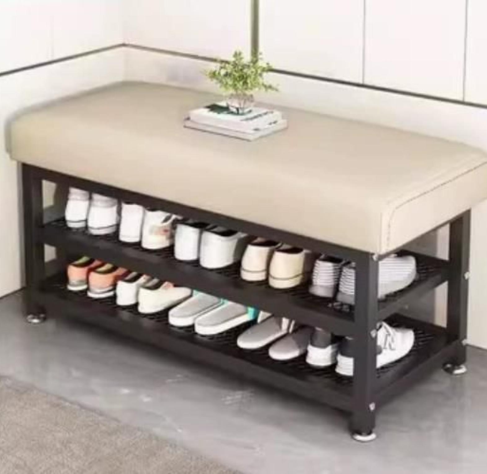 ▫️Upgrade your entryway with this stylish shoe rack—crafted with a durable metallic base and a soft, padded seat for comfortable convenience.
