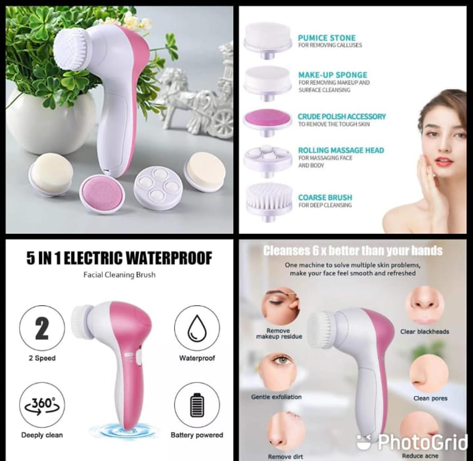 Electric facial cleansing brush with replaceable heads designed for deep pore cleaning, massage, and skin rejuvenation.