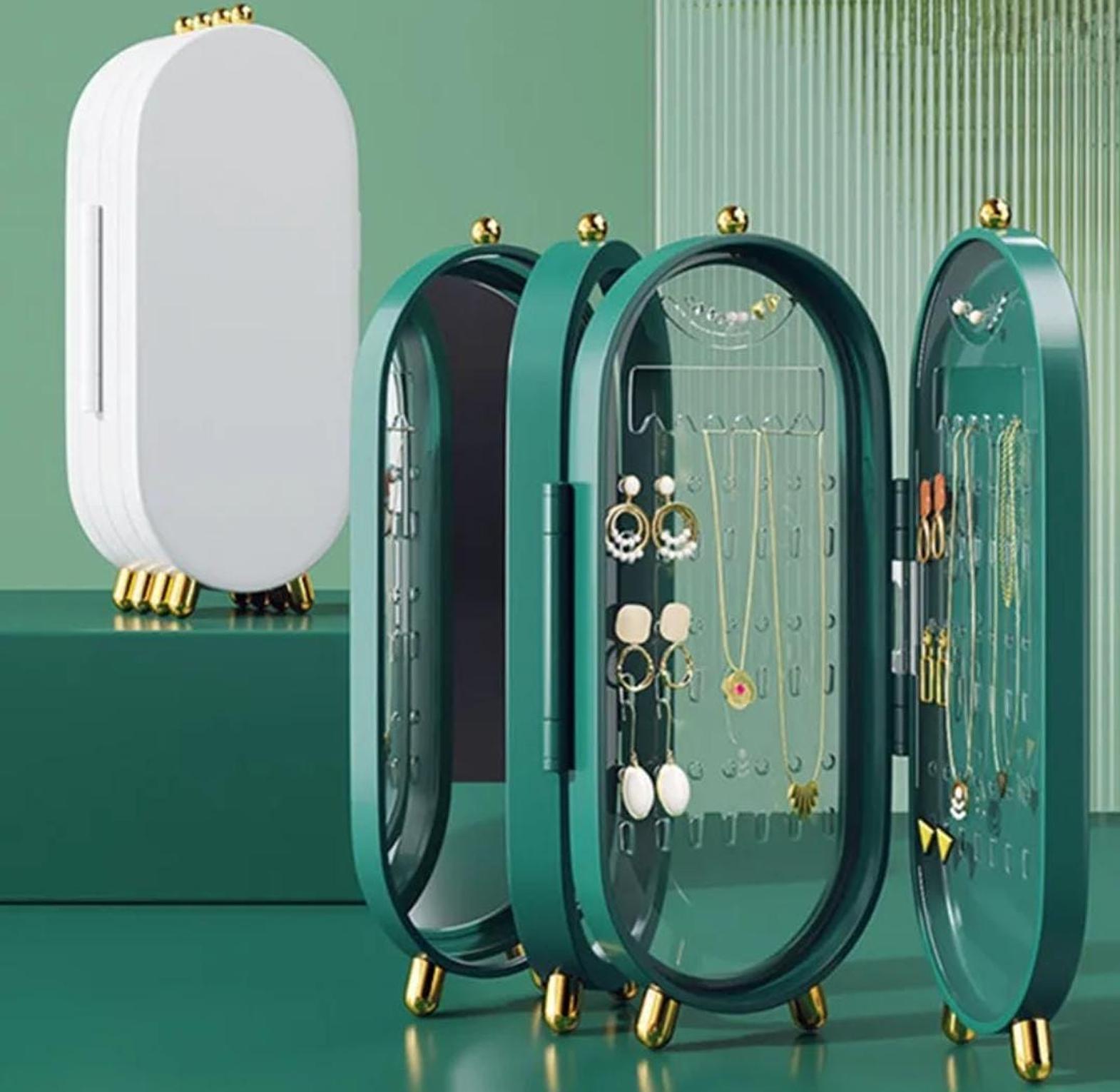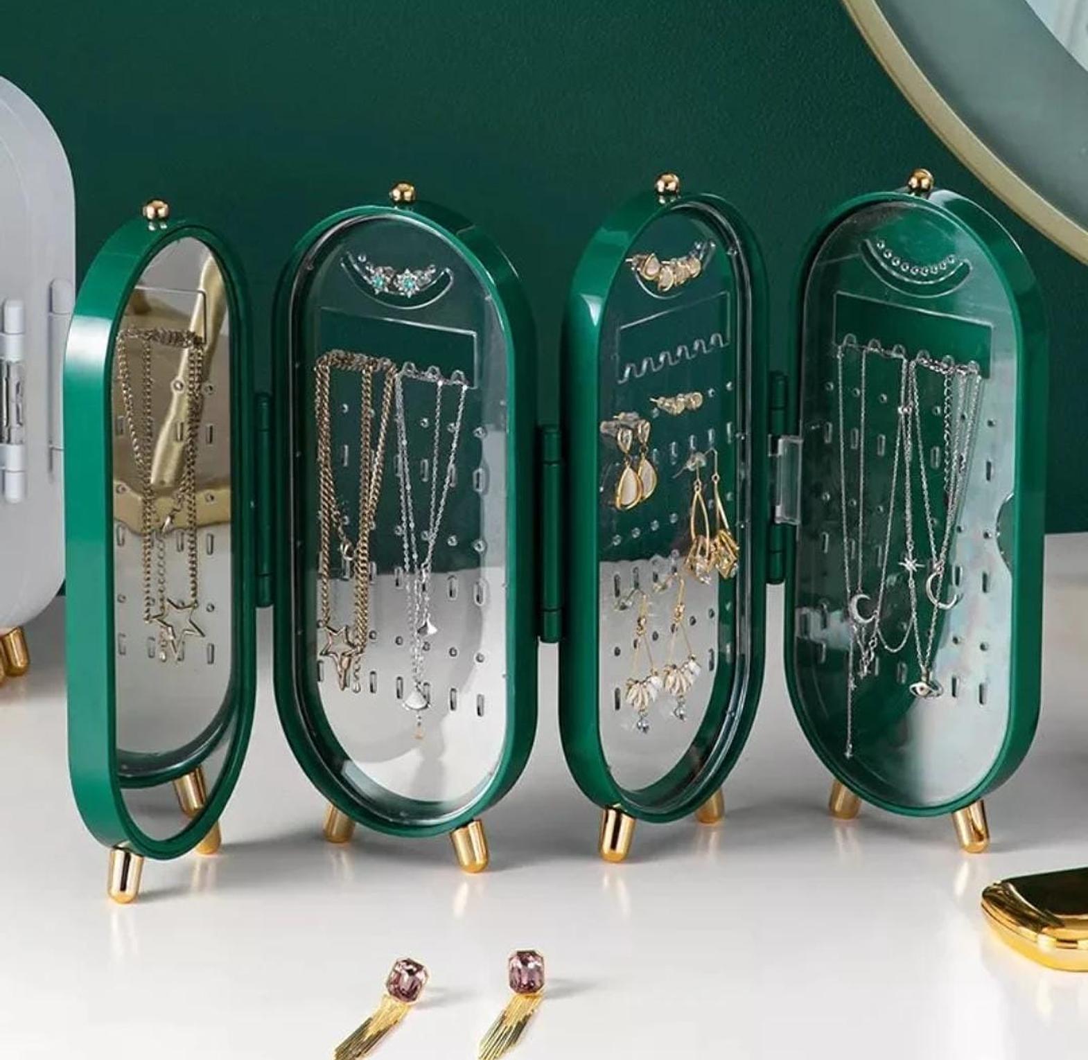 Unique foldable vintage-style jewelry display rack designed to organize and beautifully display necklaces, trinkets, and accessories while doubling as décor.