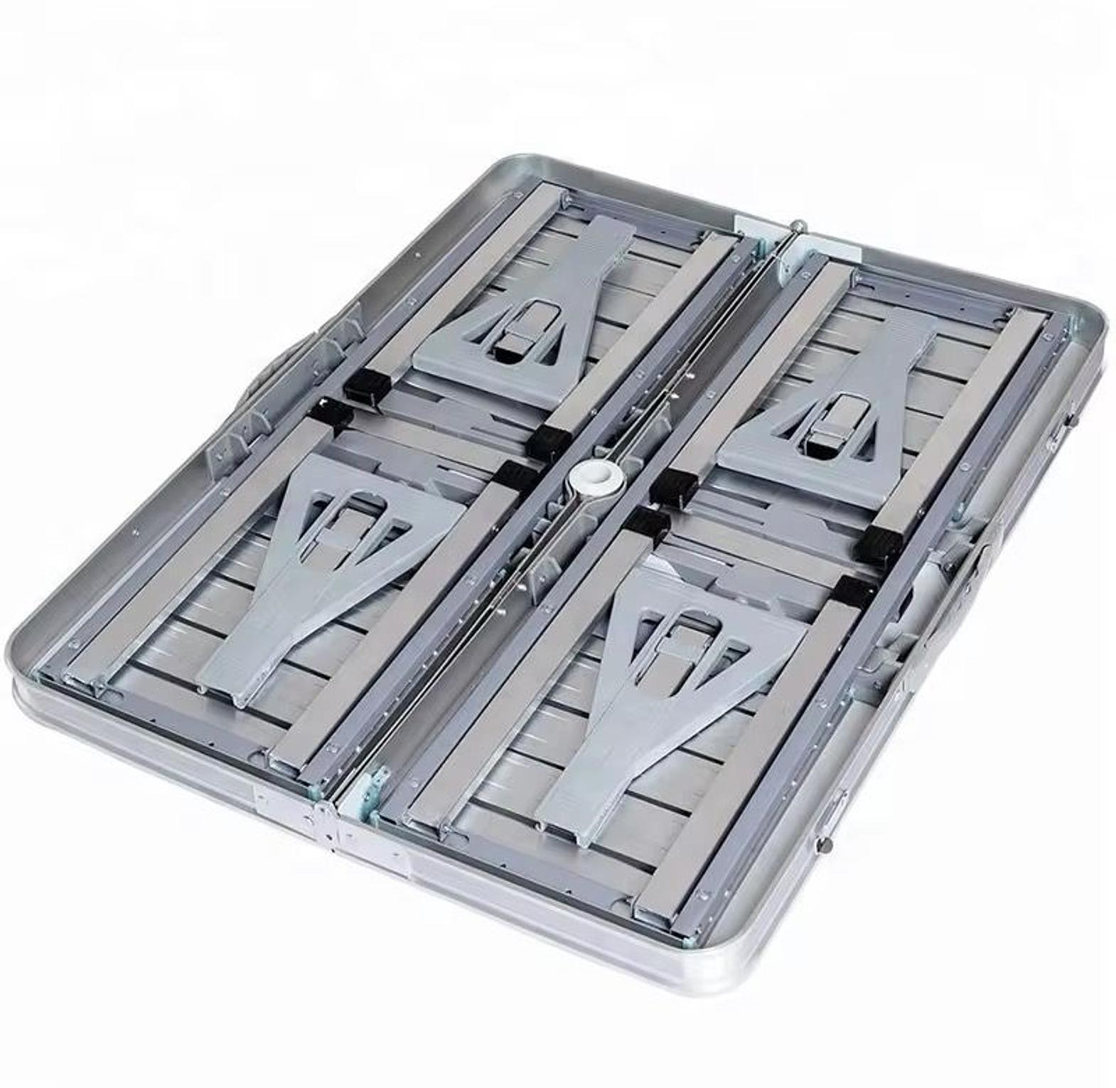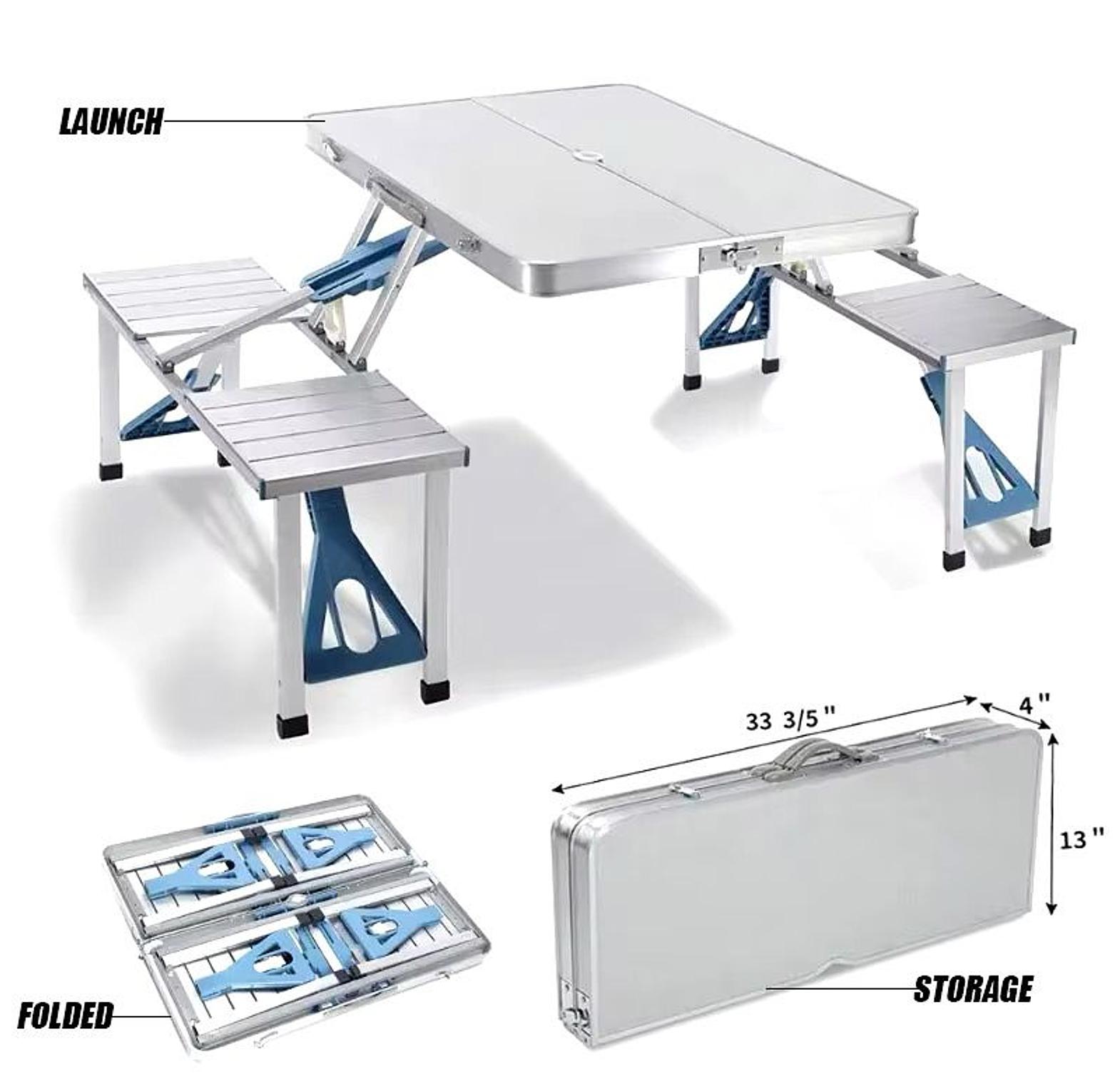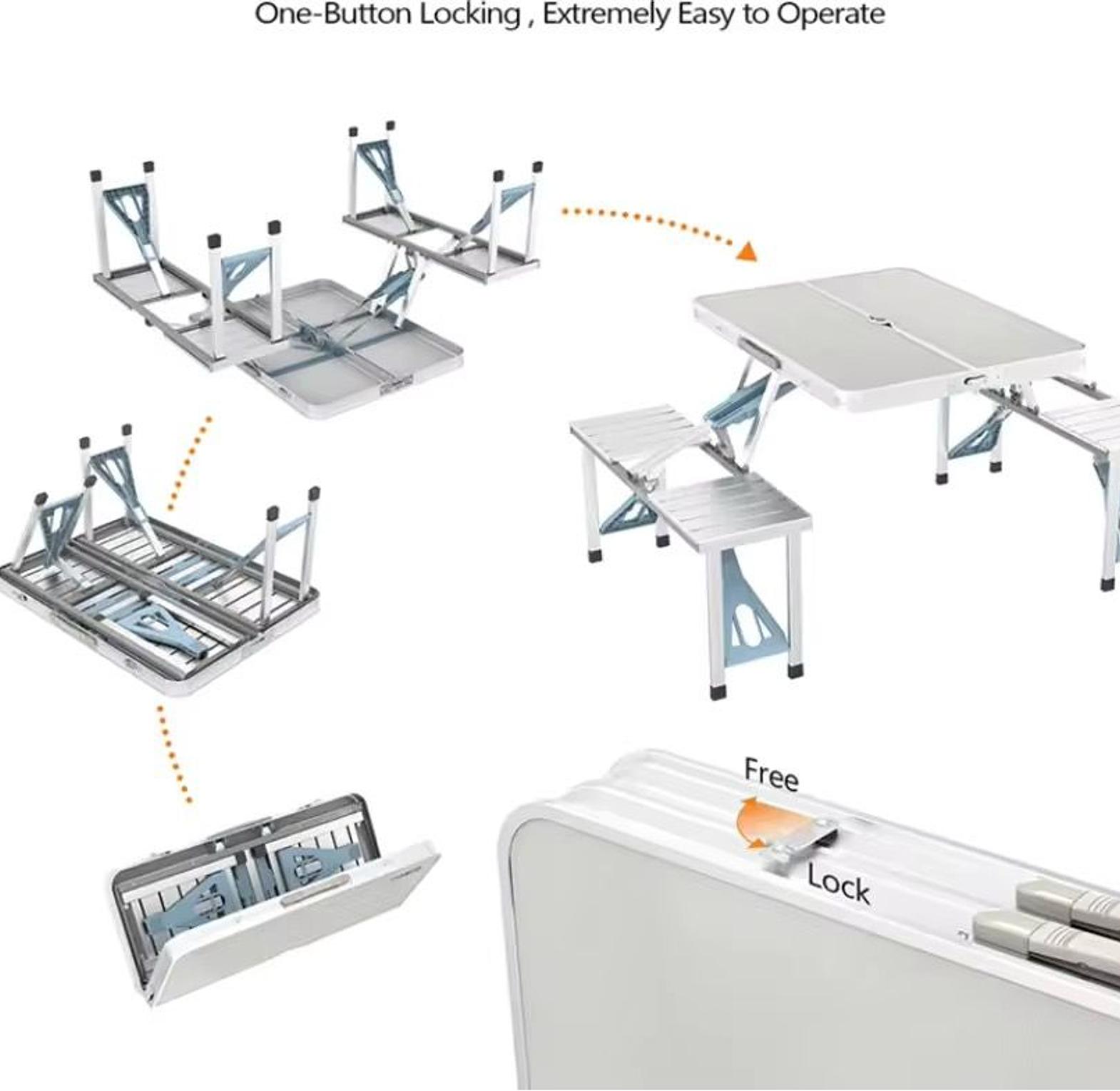 Folding adjustable aluminum alloy outdoor picnic and camping chair and table set with 4 seats.