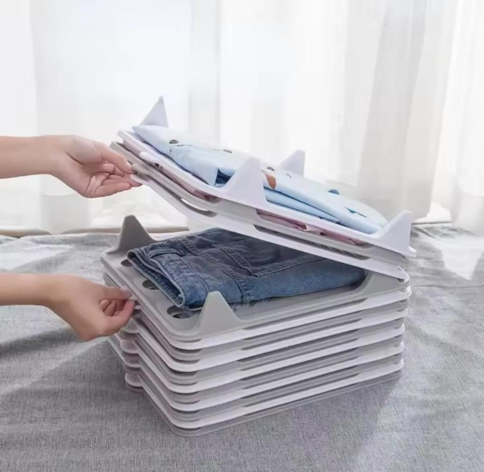 Simple and practical plastic folding board designed to help you fold shirts, T-shirts, and clothes neatly and uniformly in seconds.