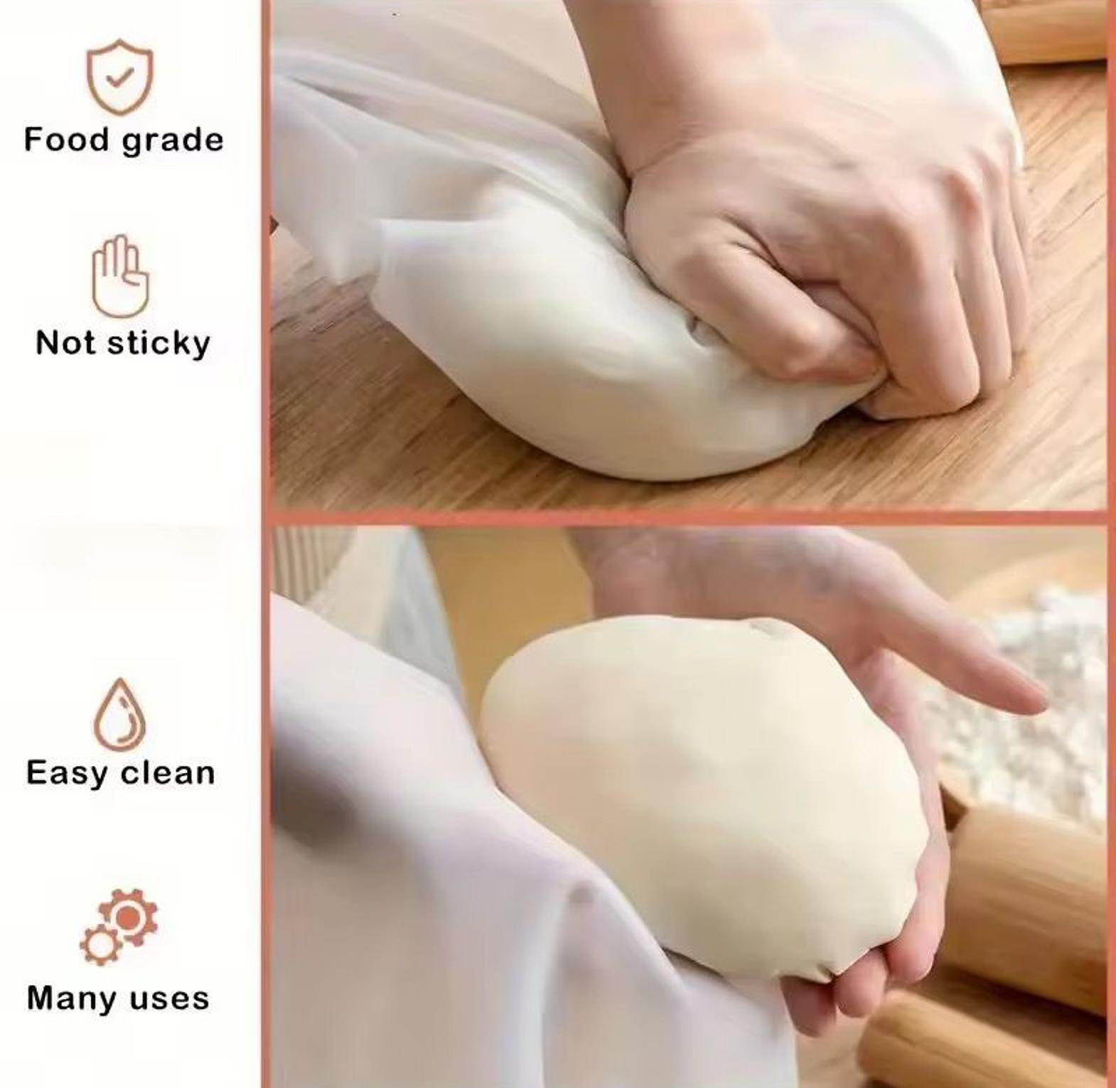 The food-grade silicone dough bag is a non-stick, mess-free kitchen accessory designed for kneading, storing, and handling dough easily.
