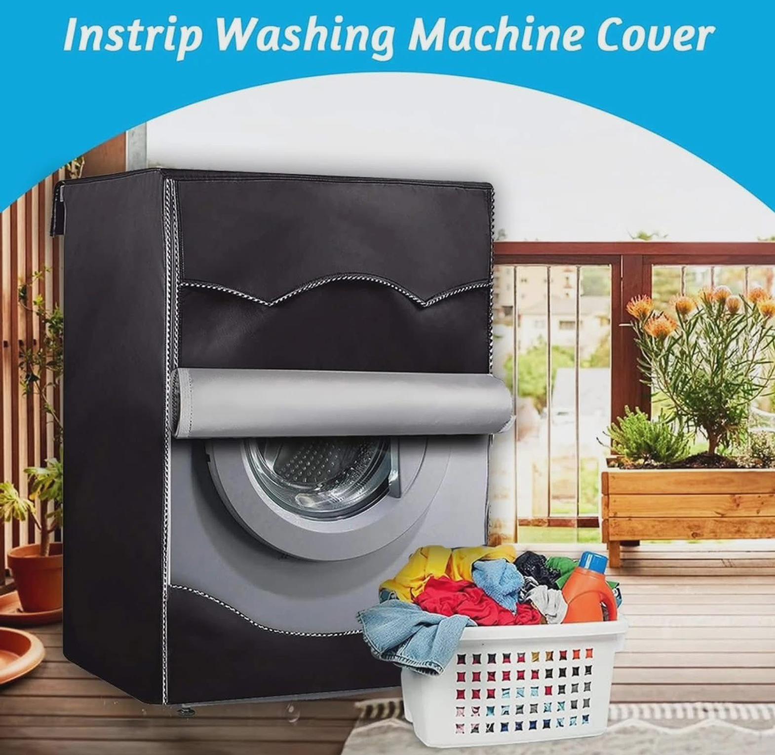 Sunproof and waterproof washing machine cover designed to protect front-load machines from dust, moisture, and sun damage.