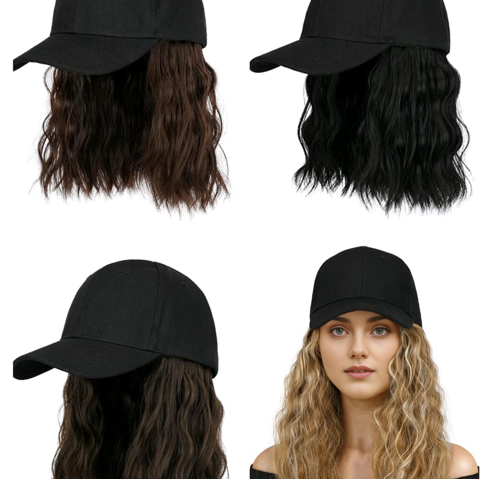 Women’s baseball cap wig with curly synthetic hair. Adjustable and stylish.