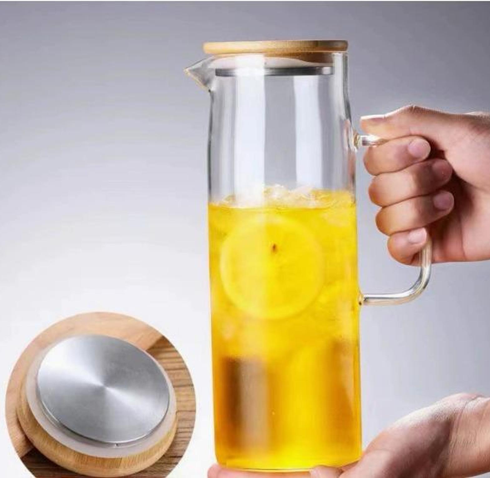 1.5L heat-resistant glass jug for hot and cold drinks. Stylish and durable.