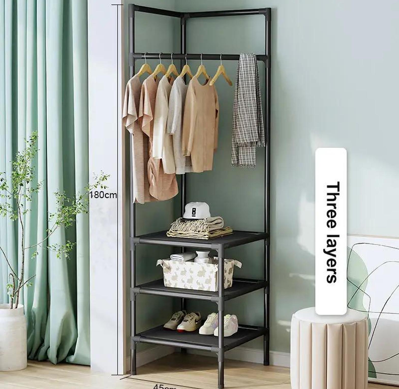 Strong metallic clothes and shoe hanger rack. Two & three-layer options.