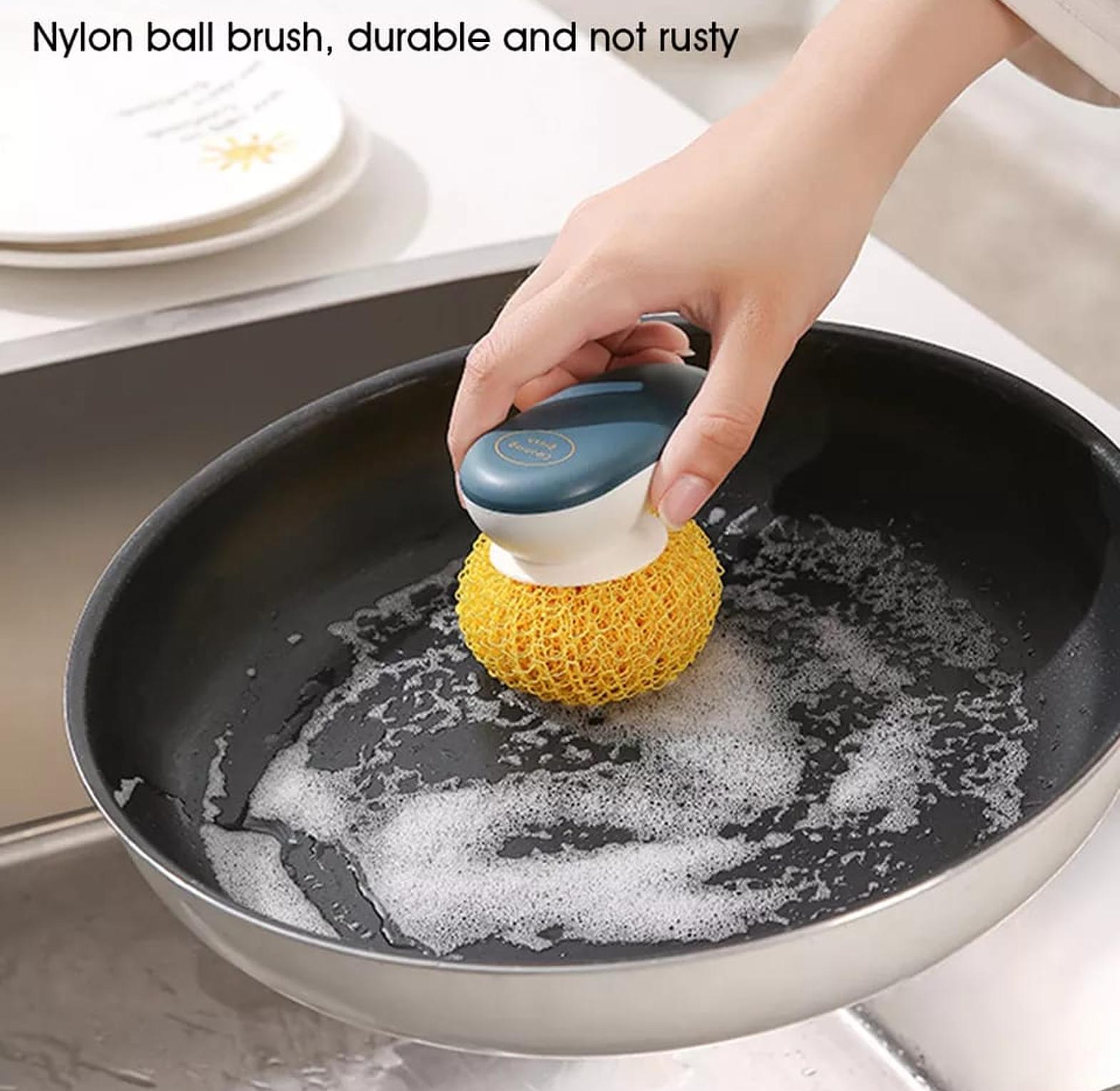Durable kitchen cleaning ball for scrubbing pots, pans, and surfaces efficiently without rusting.