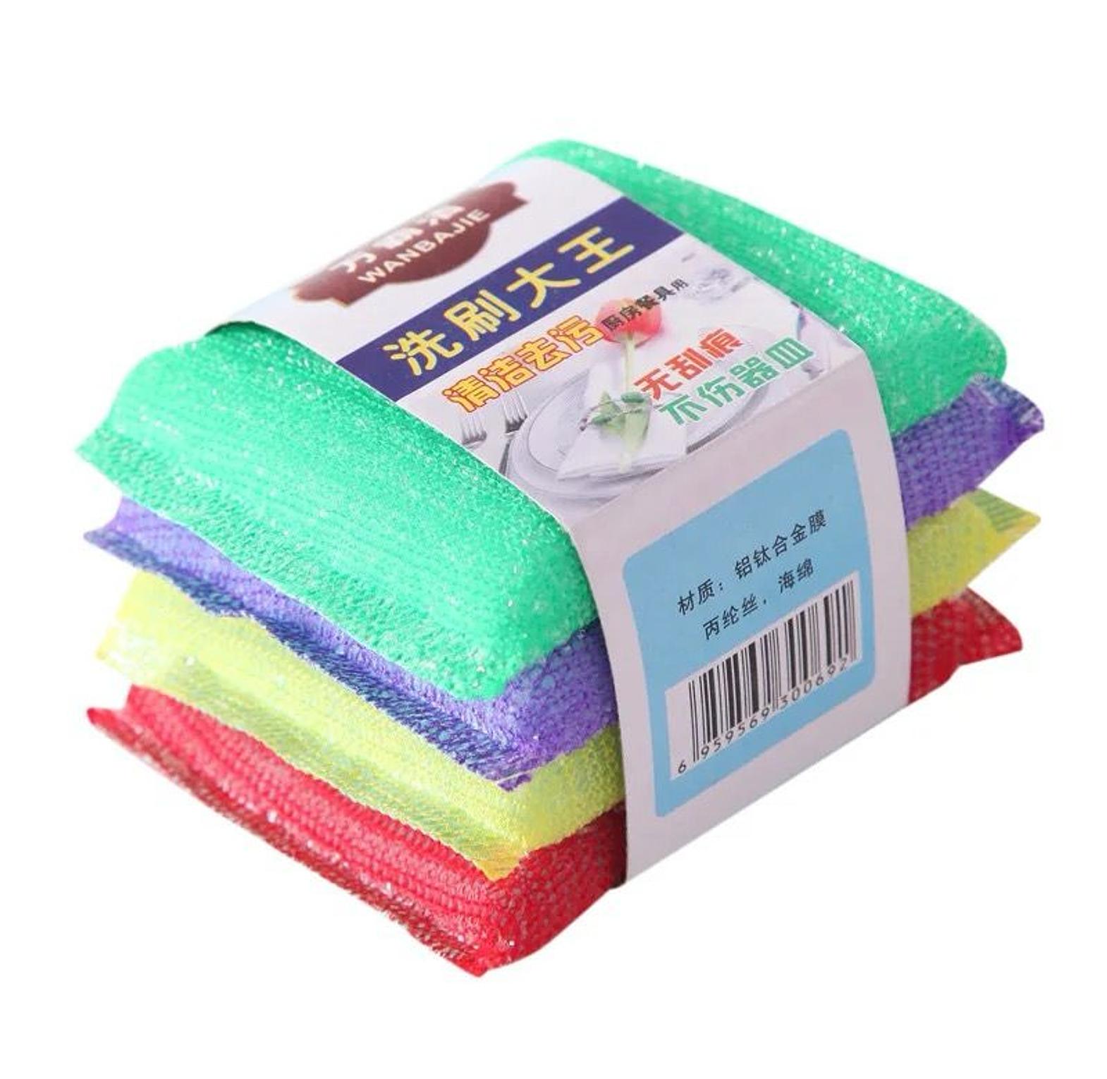 4pcs double-sided dishwashing sponges for pots and dishes.