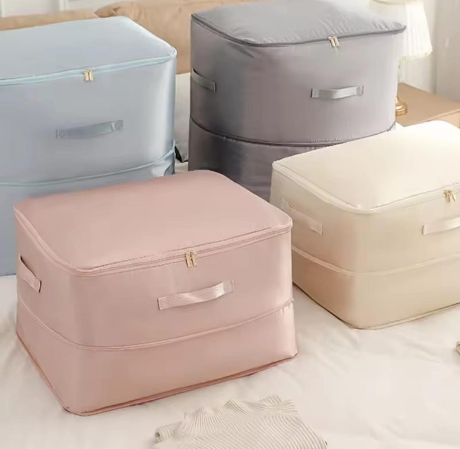 Large compression duvet bags for quilts and clothes with ultra space-saving self-compression design.