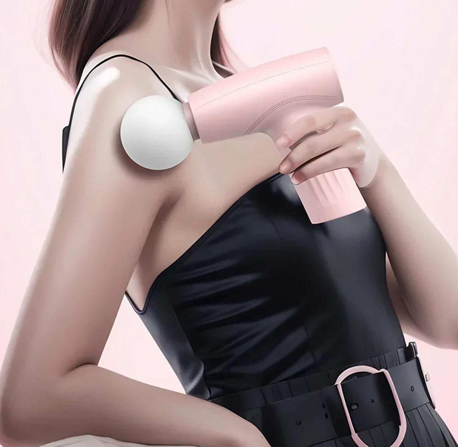 Portable mini deep-tissue massage gun for muscle relaxation and recovery. Ideal for neck and back