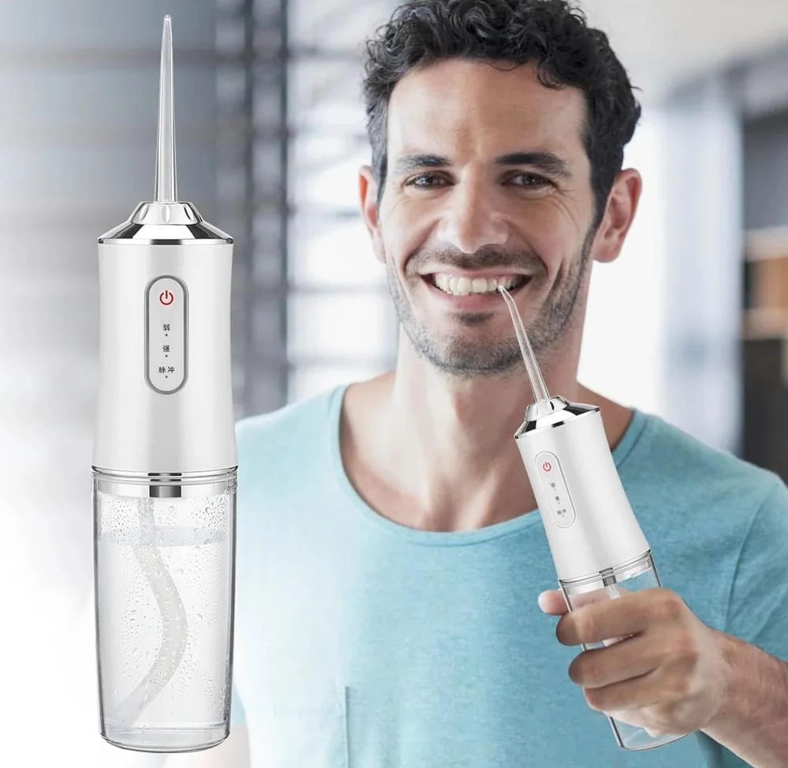 USB rechargeable dental water flosser with 4 nozzles for deep cleaning between teeth and braces, promoting better oral hygiene.