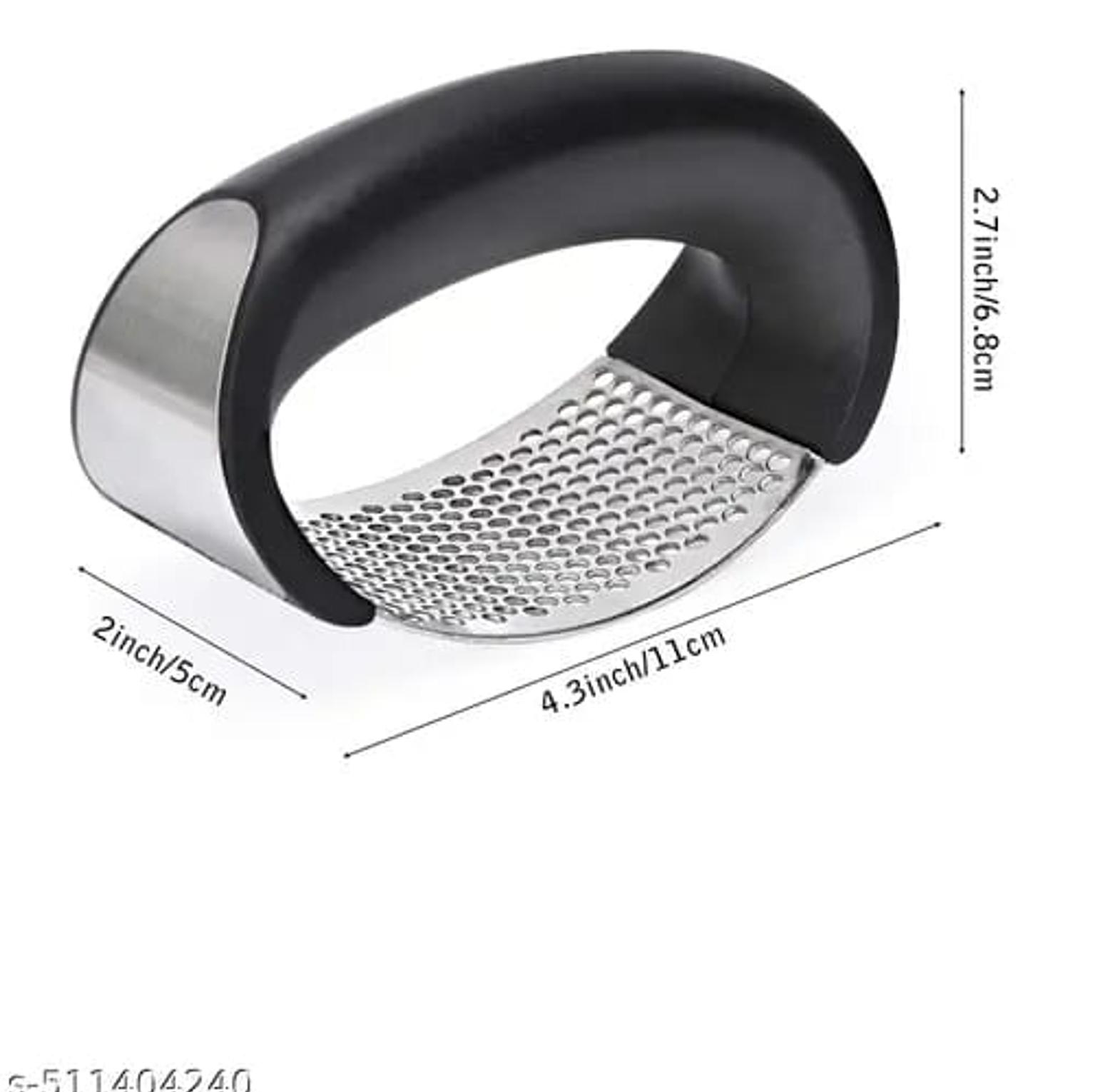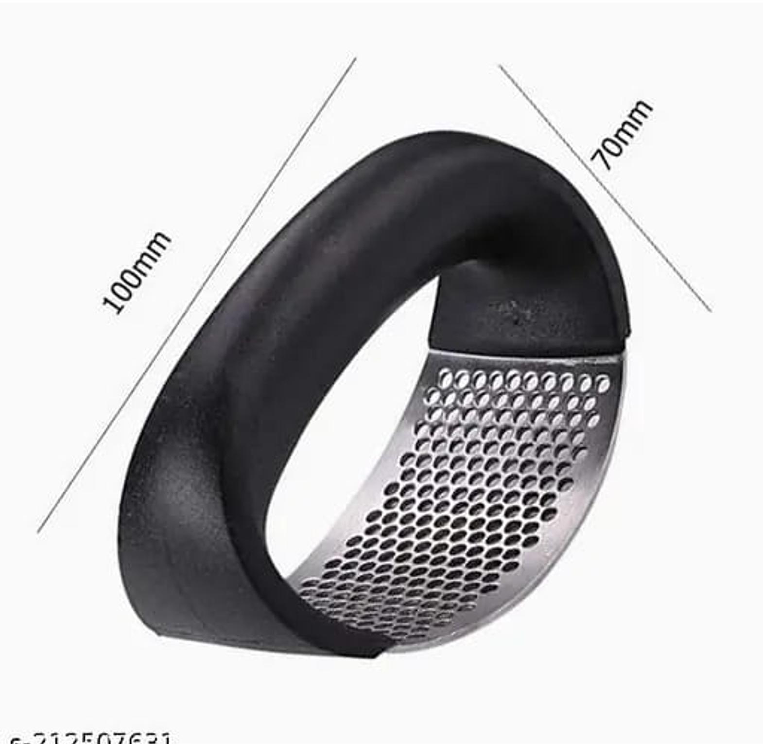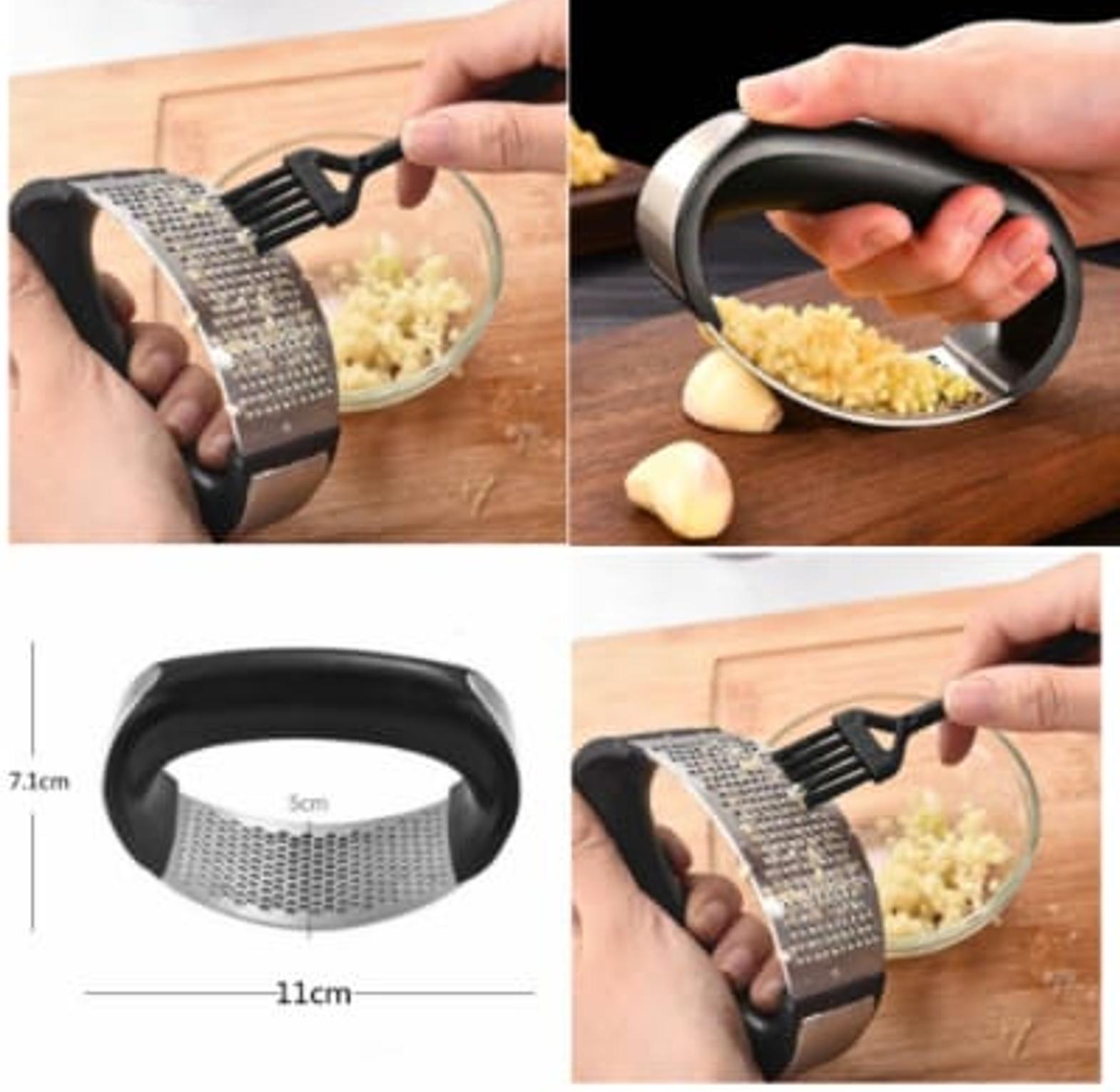Handheld ring-style garlic crusher for effortless crushing of garlic without mess.
