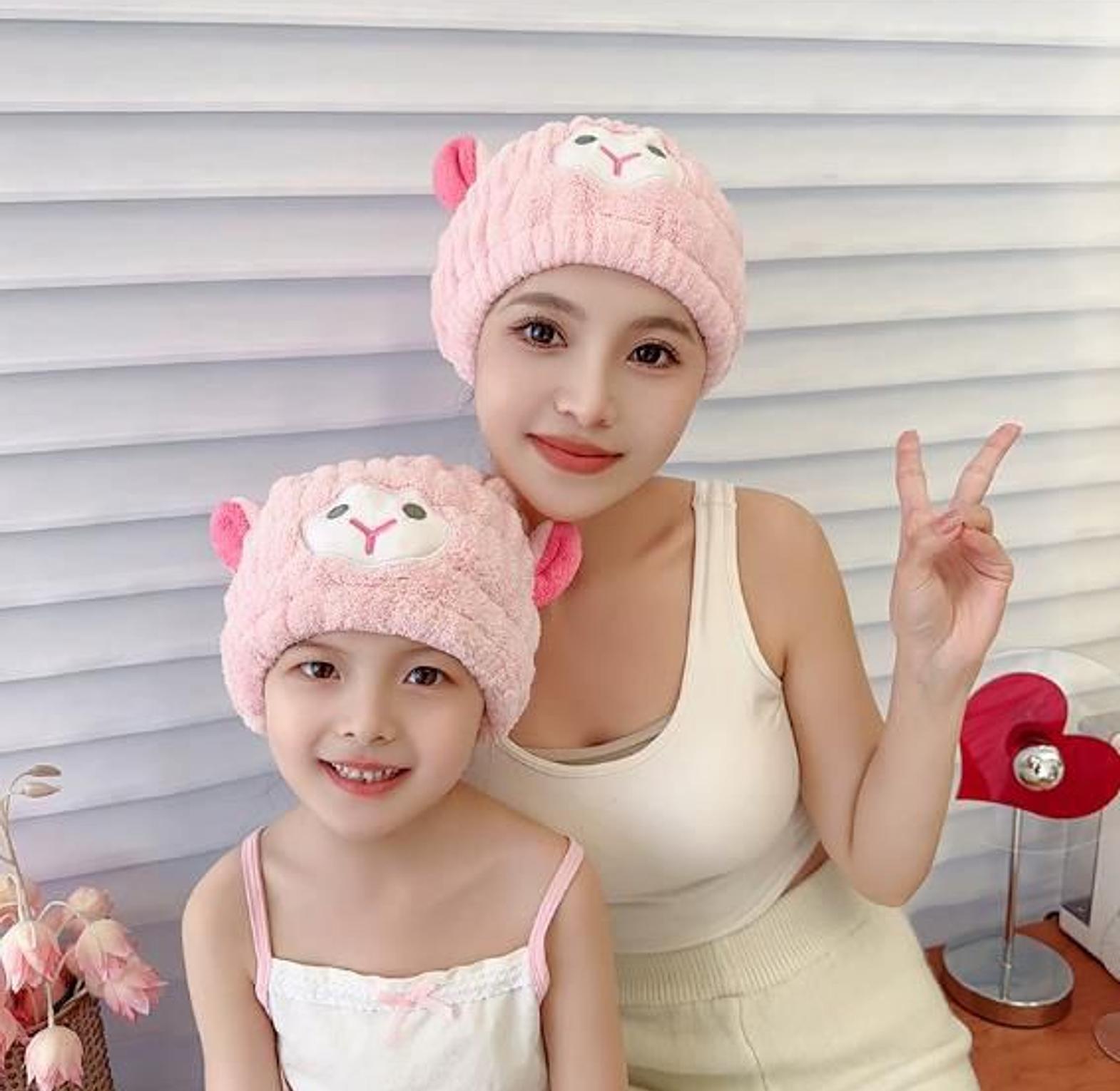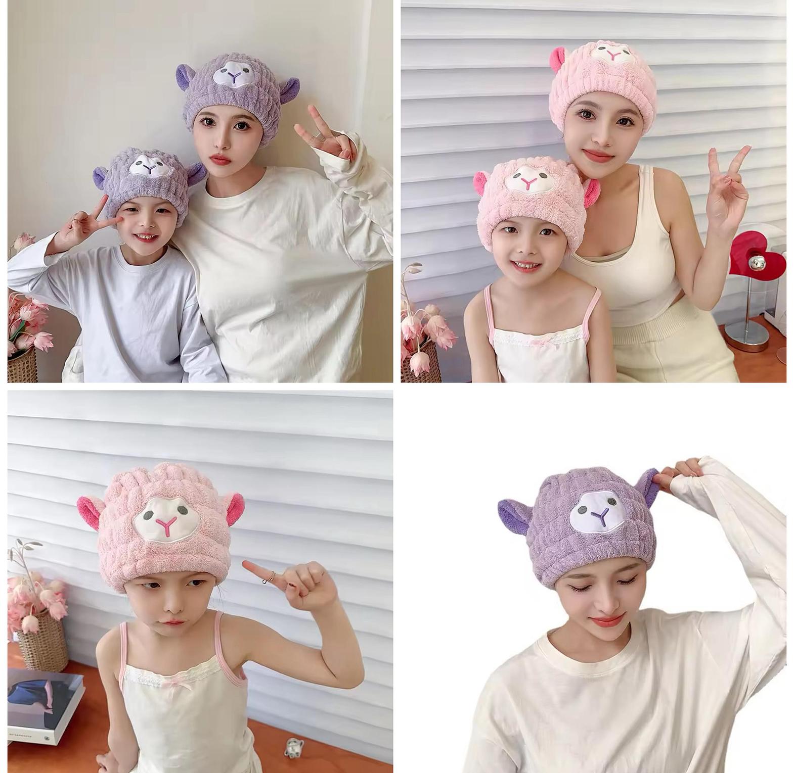 The sheep microfiber dry hair towel is a cute, absorbent turban-style towel designed for gentle and fast hair drying for both children and adults.