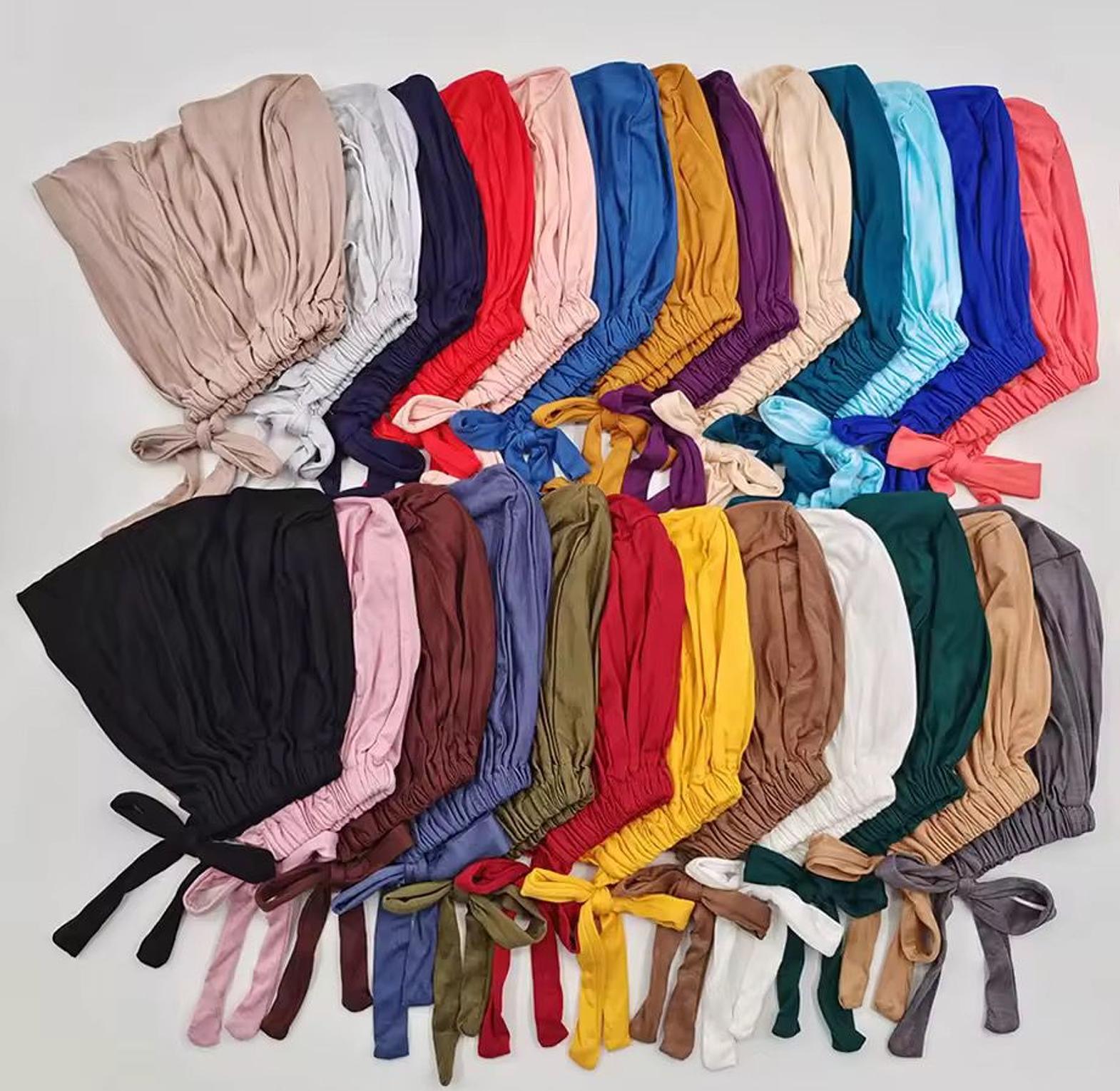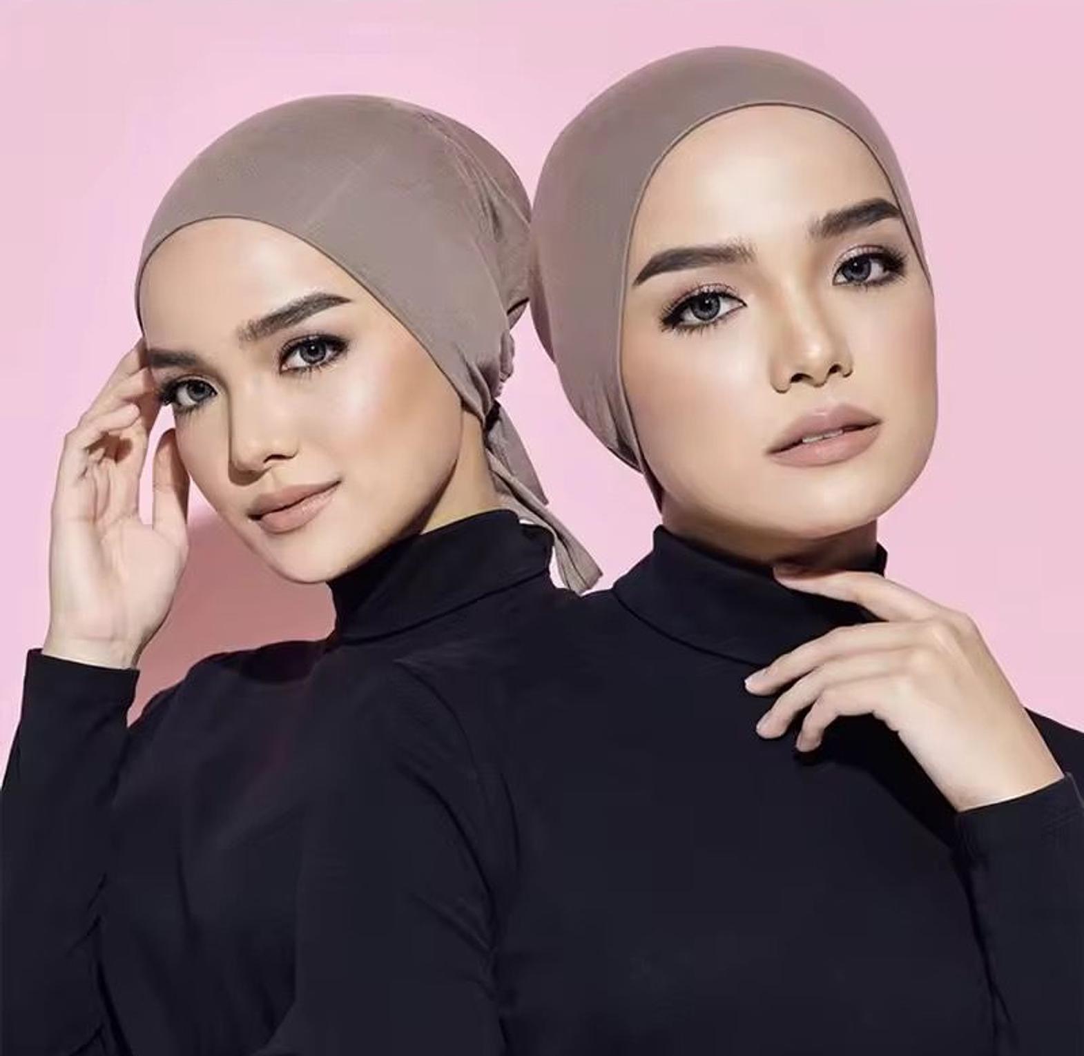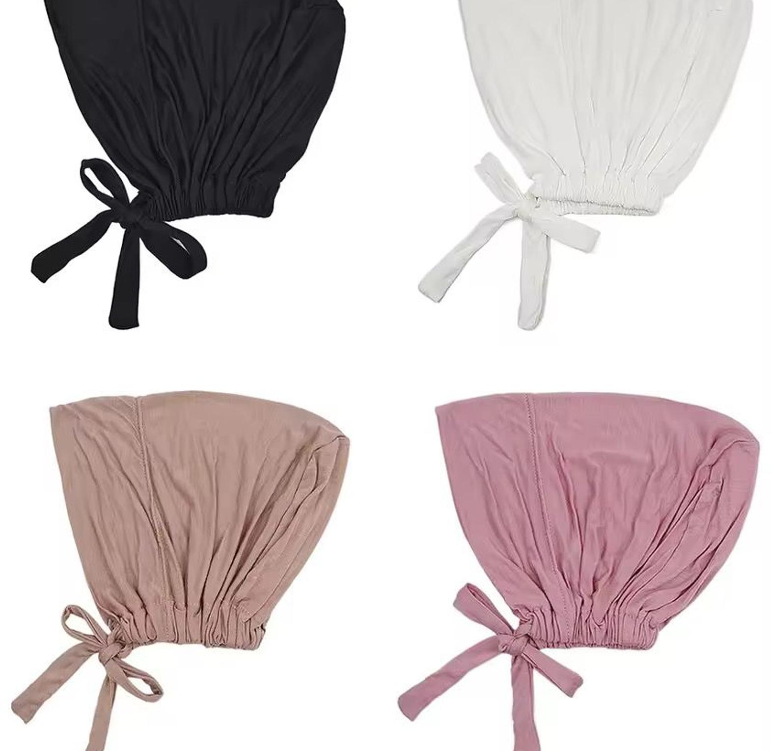 The soft modal Muslim turban hat is a comfortable, lightweight inner hijab cap designed to provide secure coverage and a smooth base for headscarves.