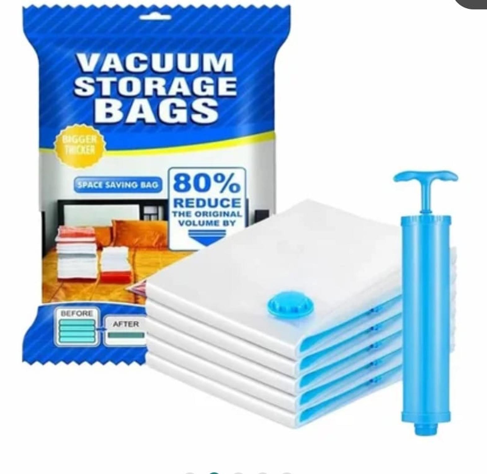 Space-saving vacuum storage bags set with 5 pieces and a free hand pump for efficient storage.