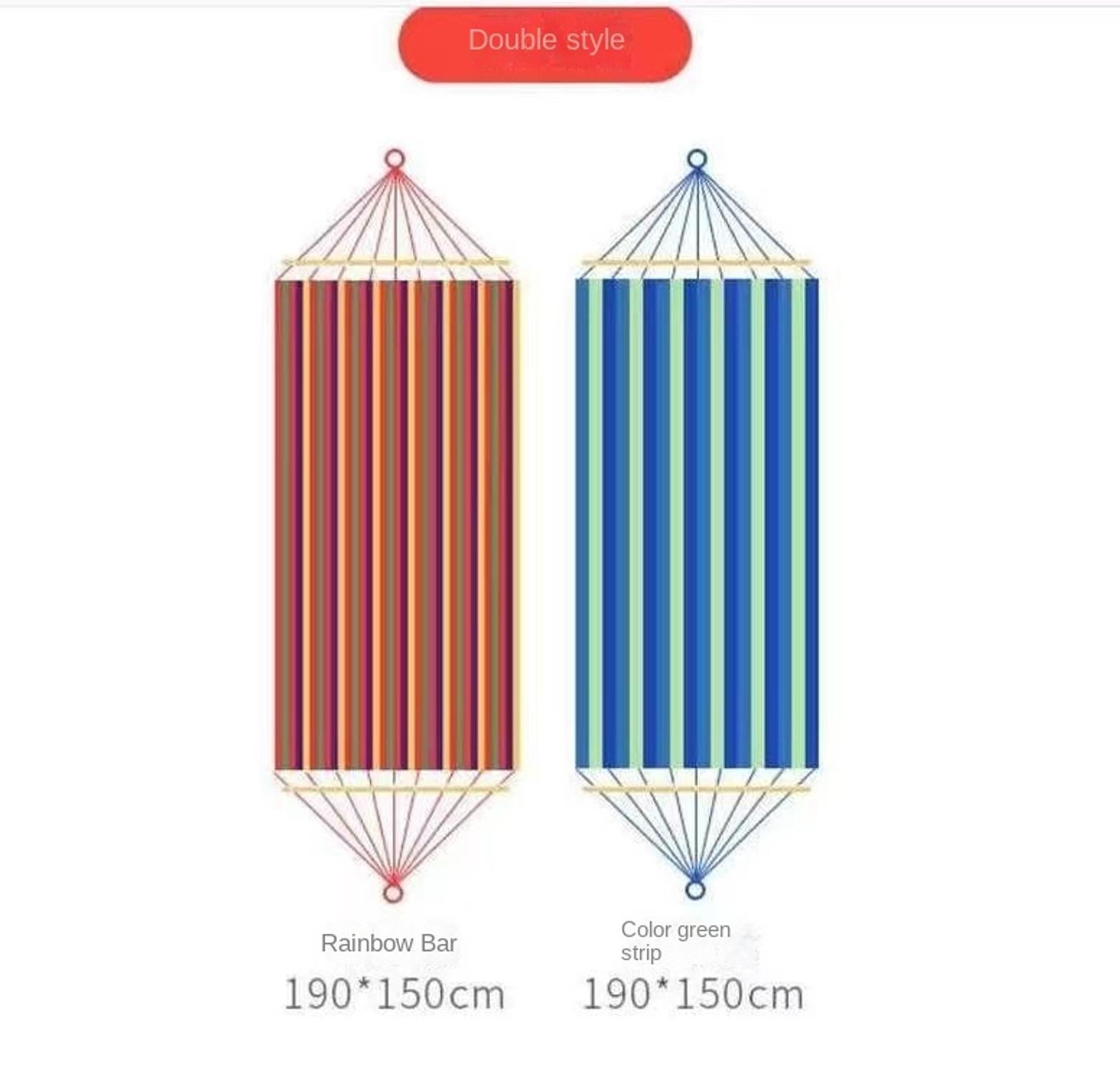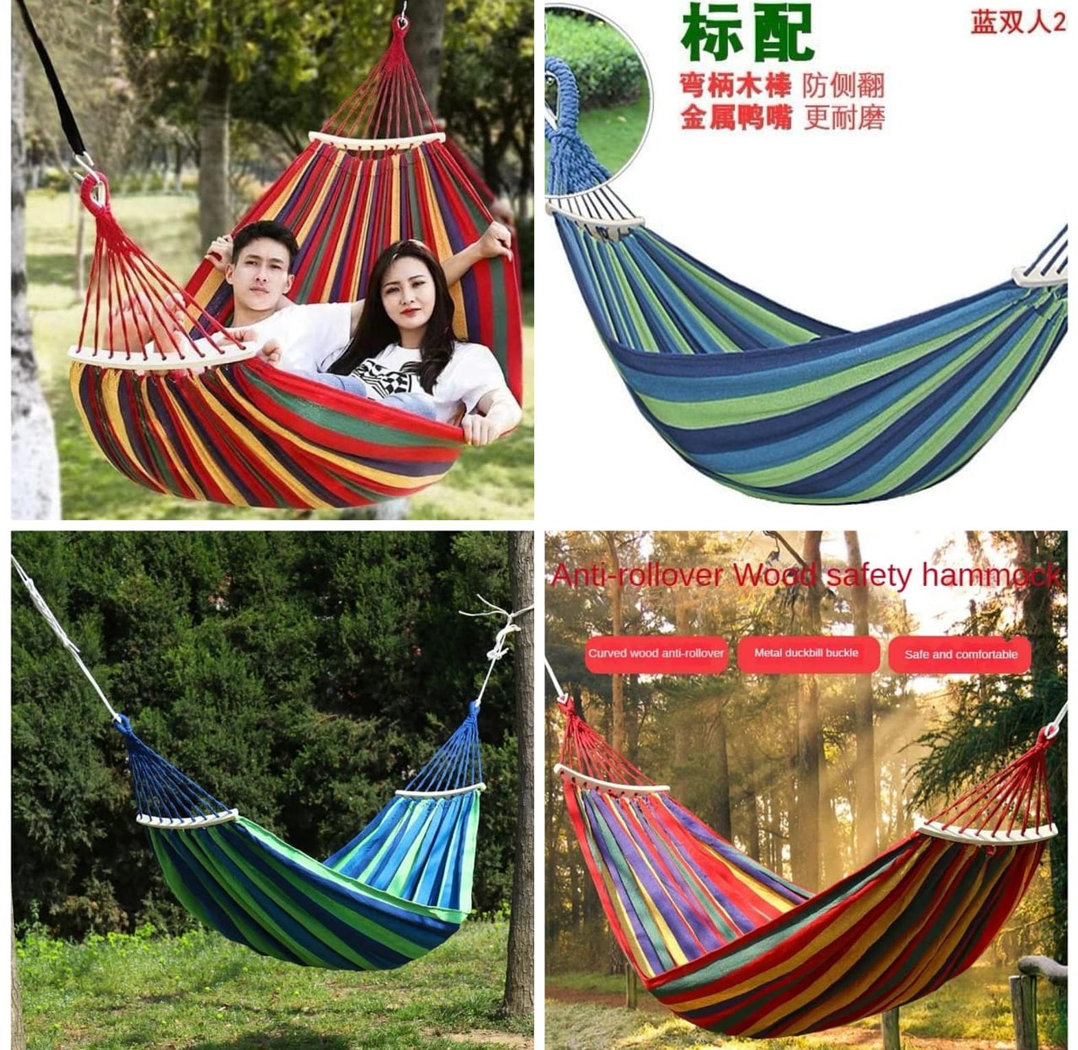 Strong outdoor striped hammock designed to carry up to two people, perfect for camping, gardens, or relaxation outdoors.