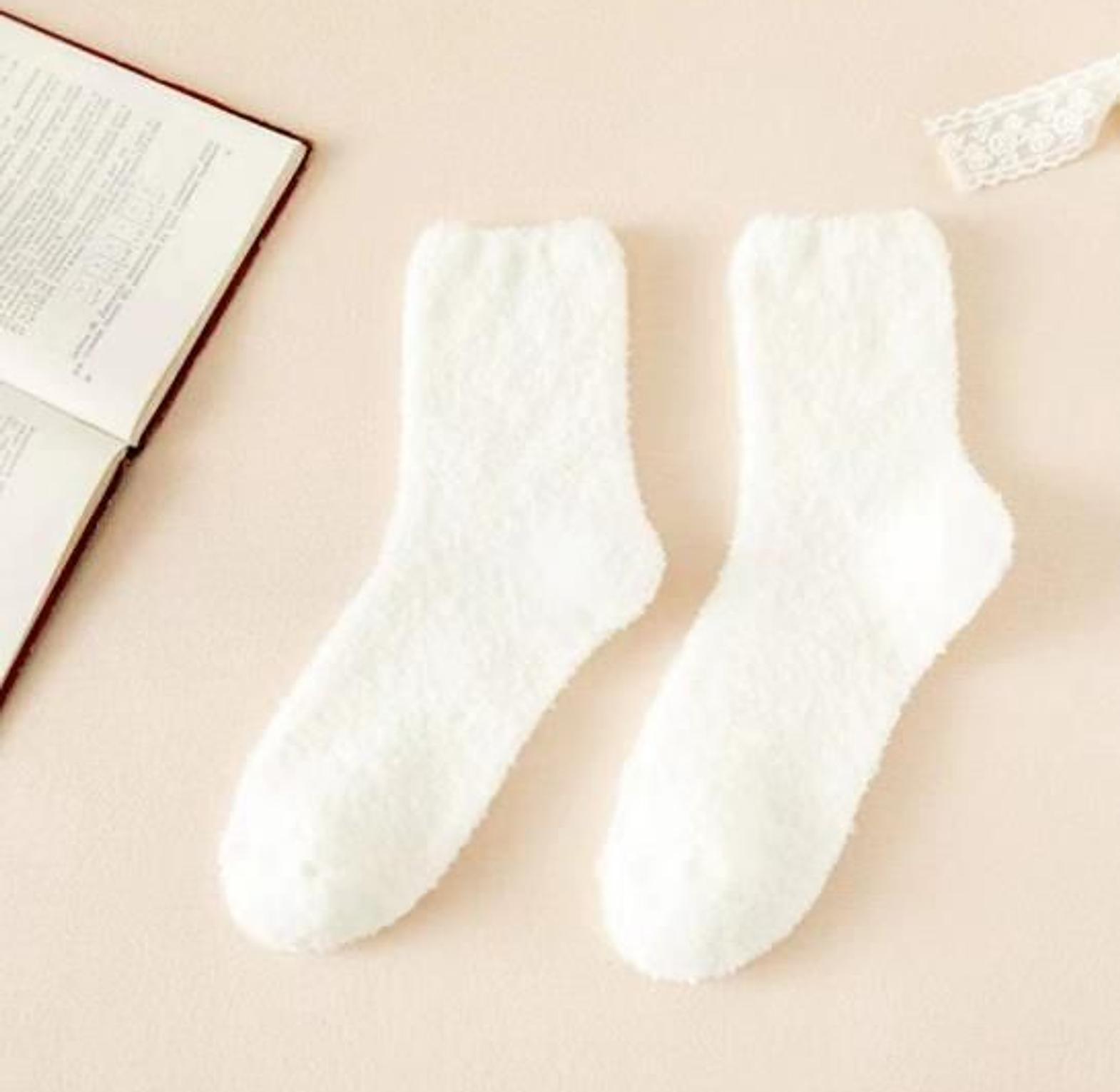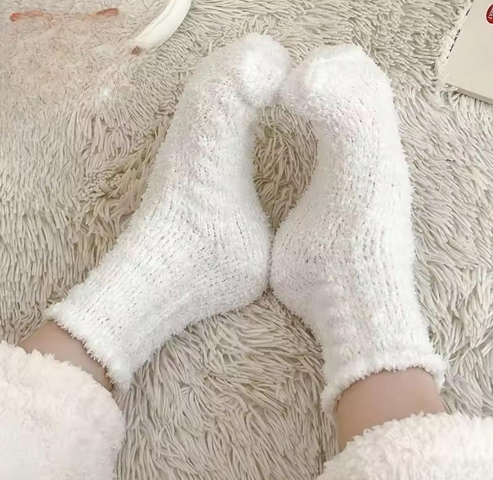 These thickened fleece coral socks are warm, mid-calf sleepwear socks for women, designed to provide comfort and cozy insulation during winter.