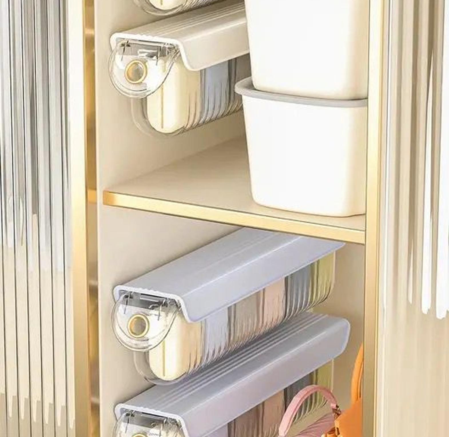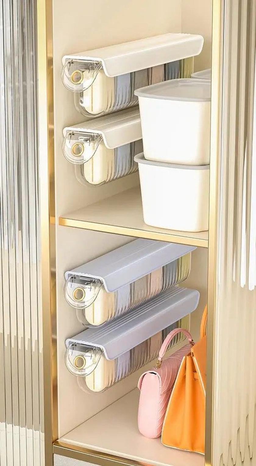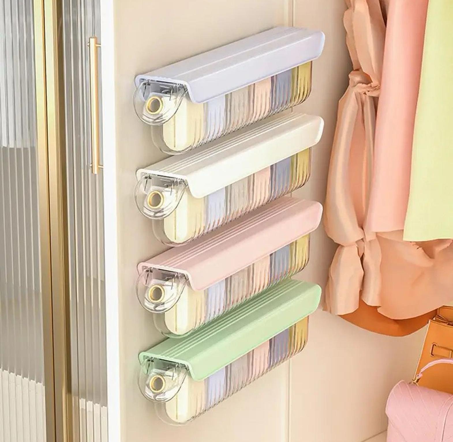 Wall-mounted underwear and socks organizer box.