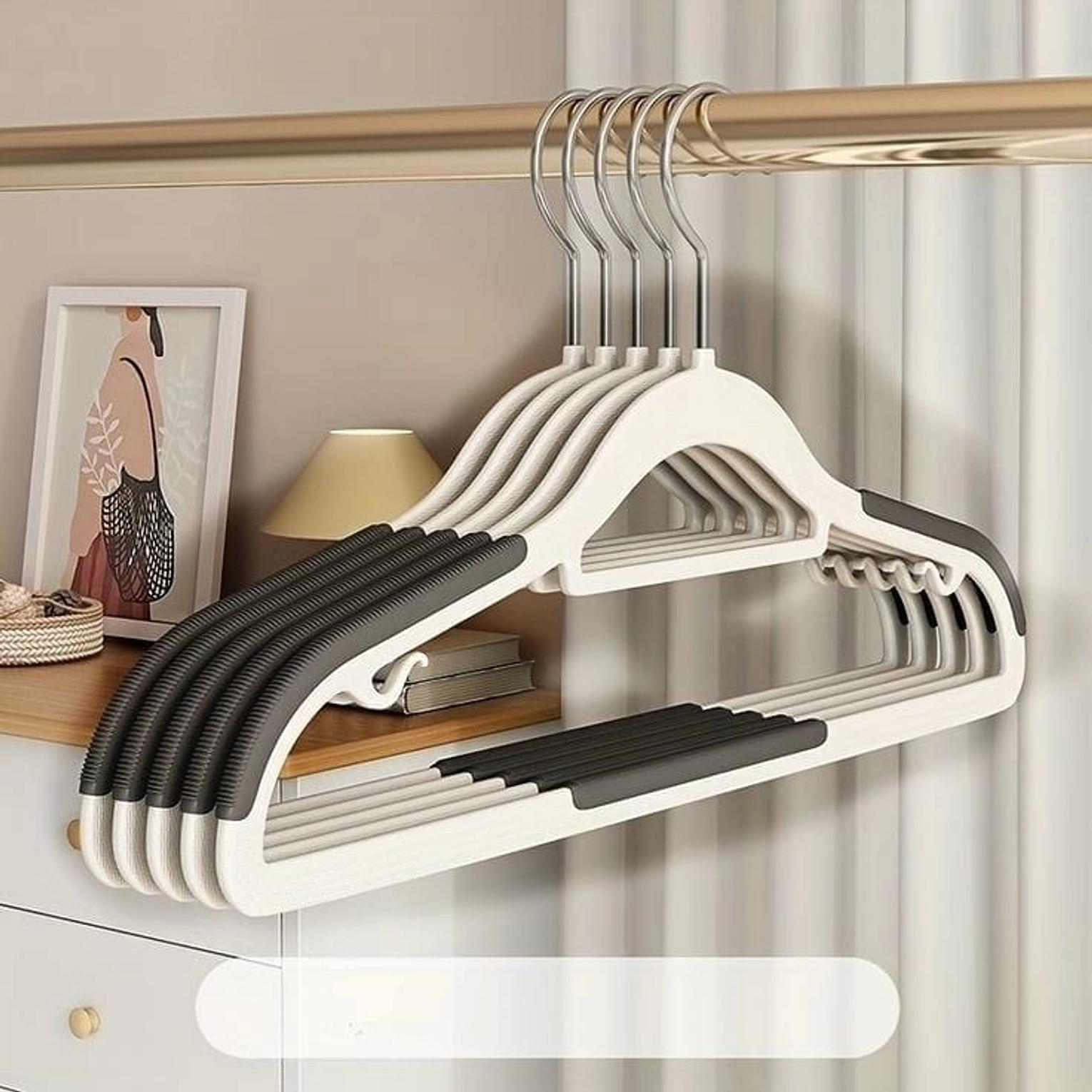 10pcs velvet hangers with non-slip surface and notched shoulders. Strong and space-saving.