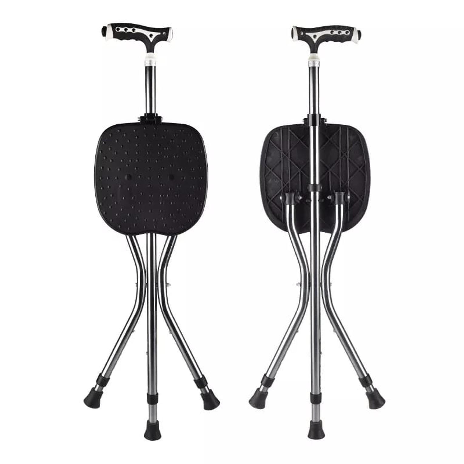 Strong and reliable walking stick that easily converts into a seat, offering support and comfort for seniors during walks or outdoor activities.