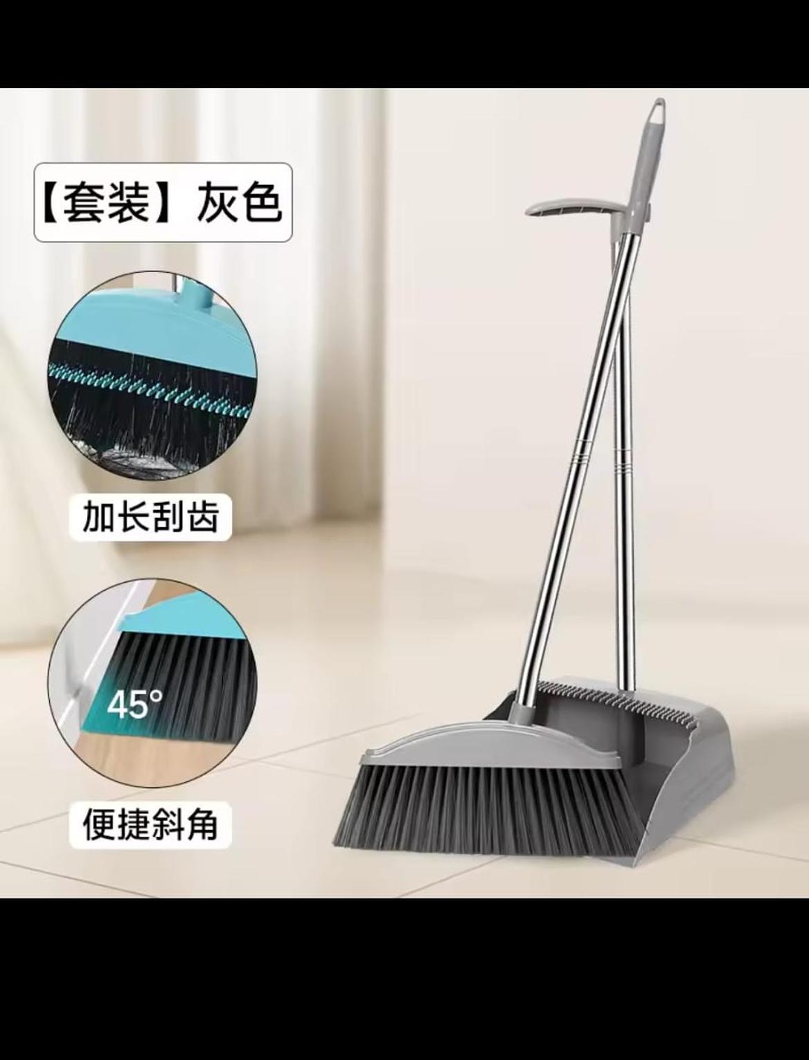 2-in-1 flexible broom and dustpan for easy, efficient cleaning. Available in grey.