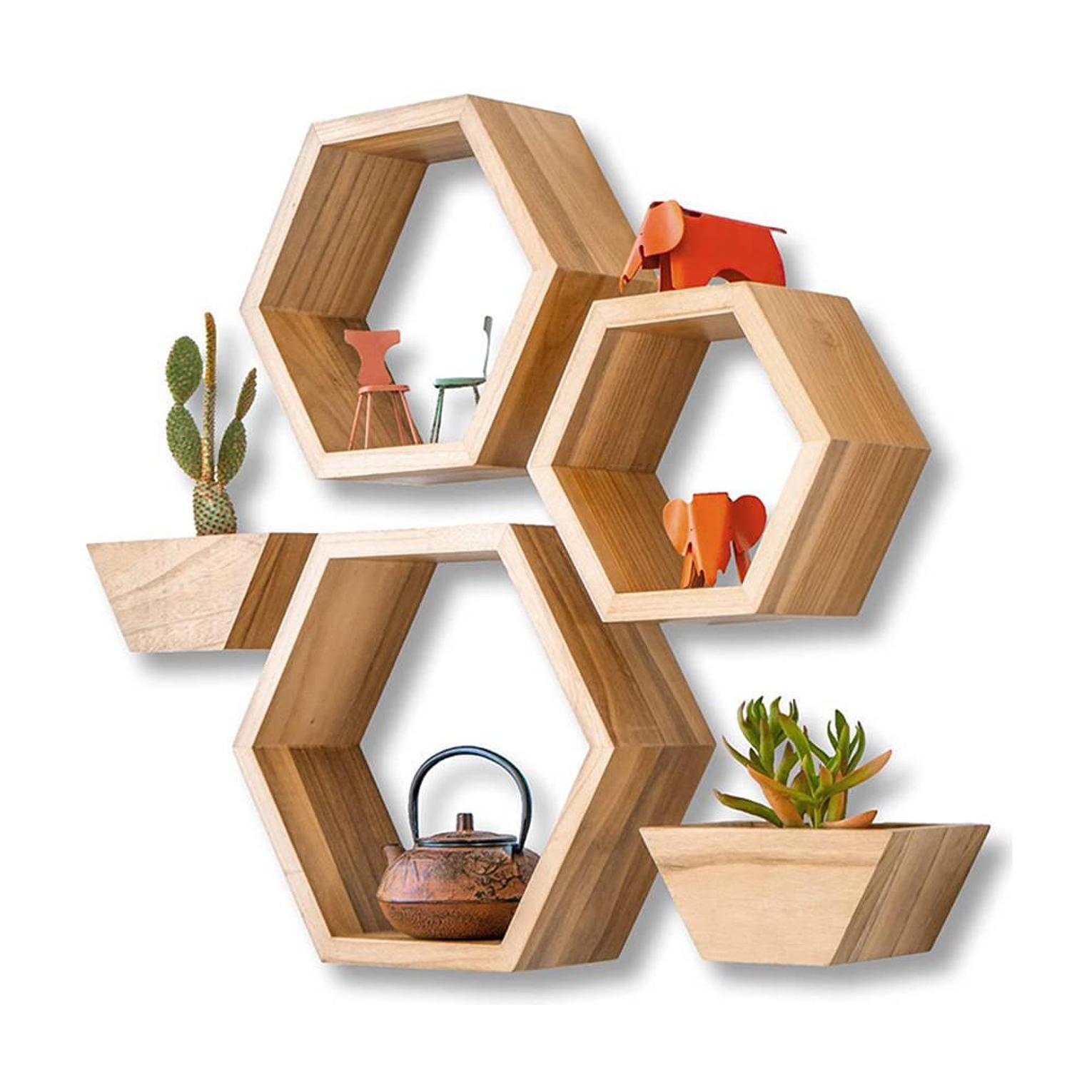 5-in-1 wooden floating shelves with hooks.