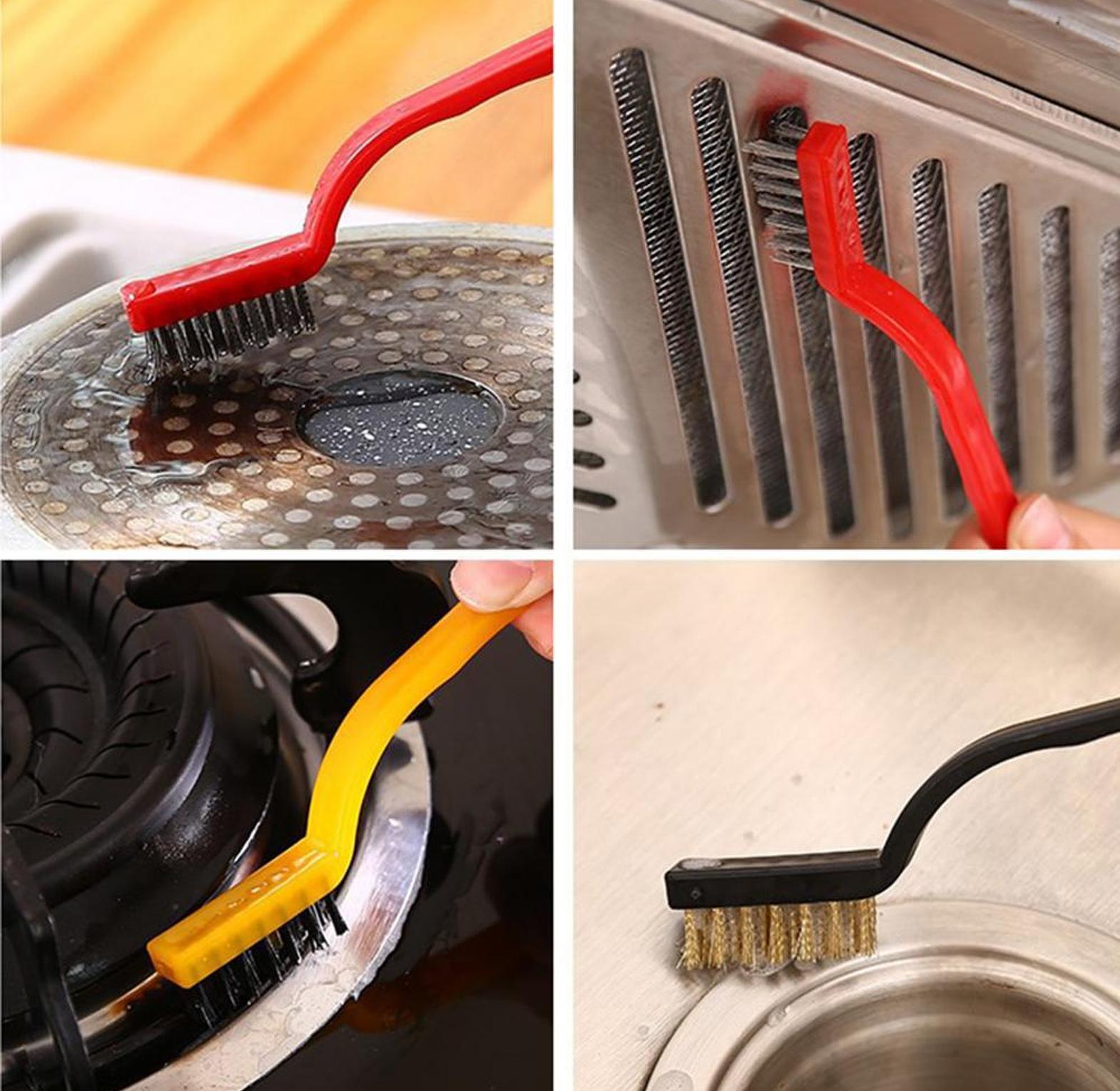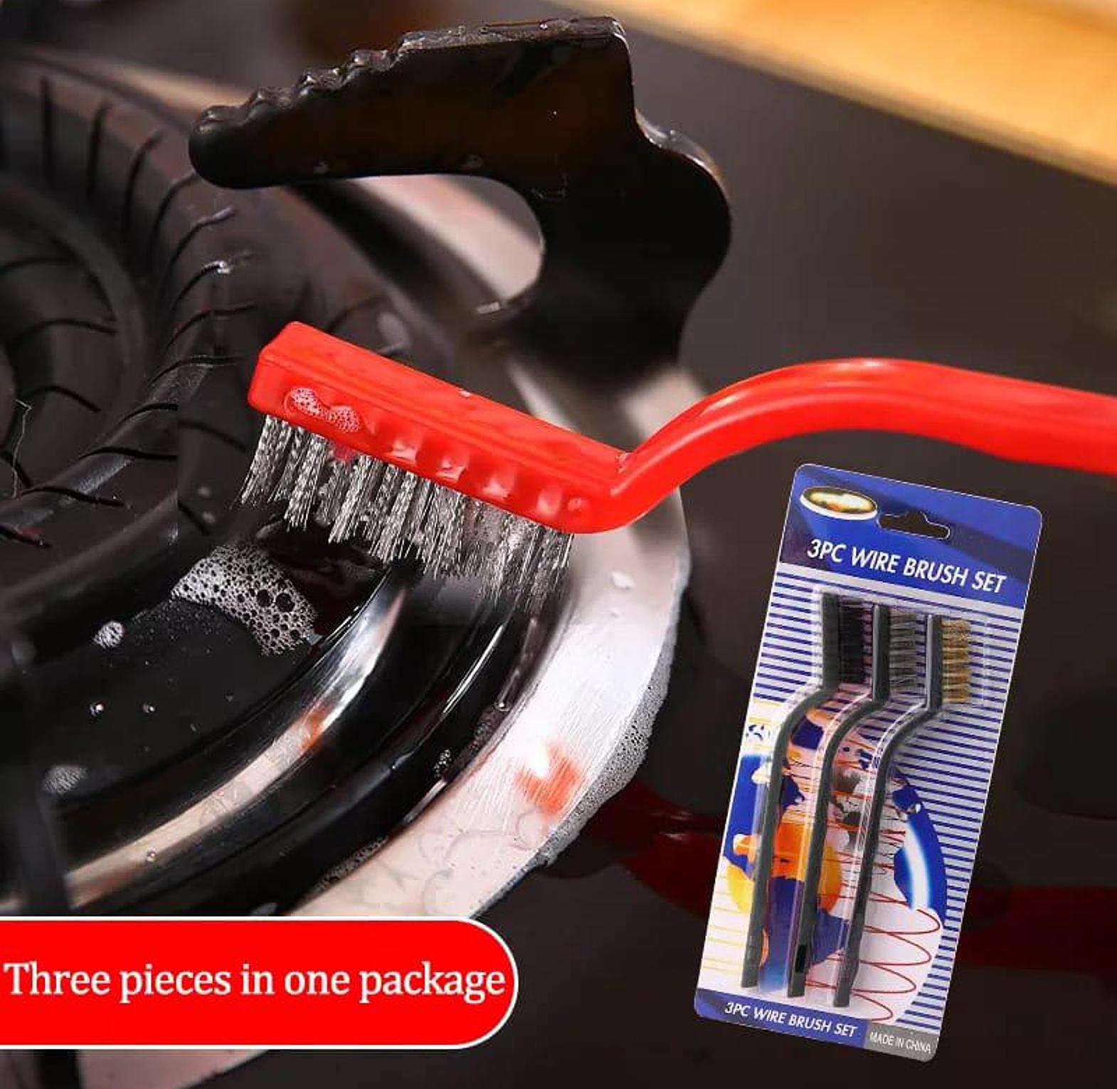Efficient 3-piece cleaning brush set for degreasing range hoods, stovetops and tight spots. Durable bristles reach deep into crevices for quick, effective kitchen cleaning.