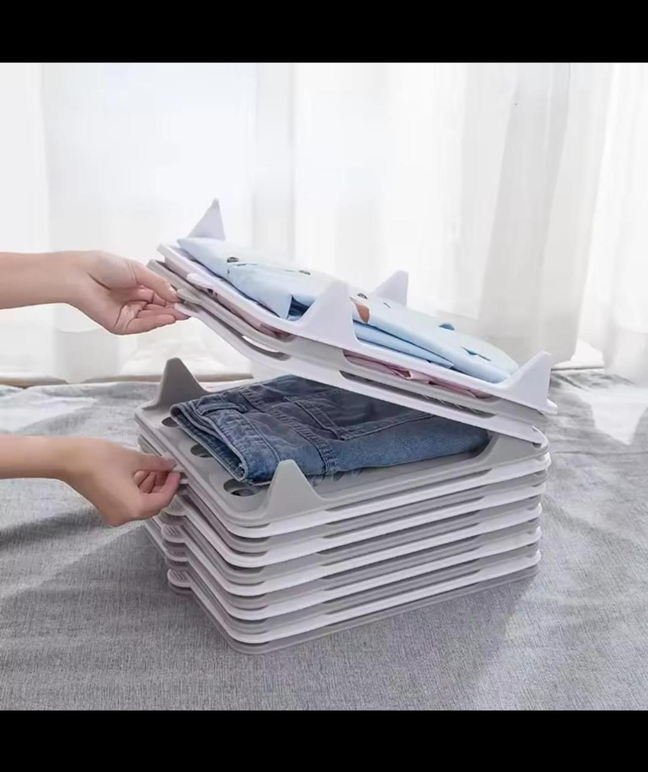 Simple and practical plastic folding board designed to help you fold shirts, T-shirts, and clothes neatly and uniformly in seconds.