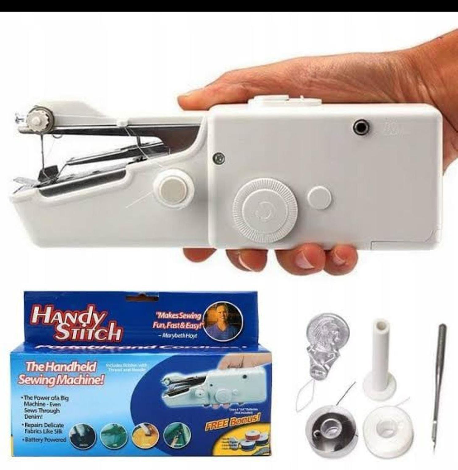 Portable hand-held sewing machine for quick repairs, DIY projects, and light stitching at home or while traveling.