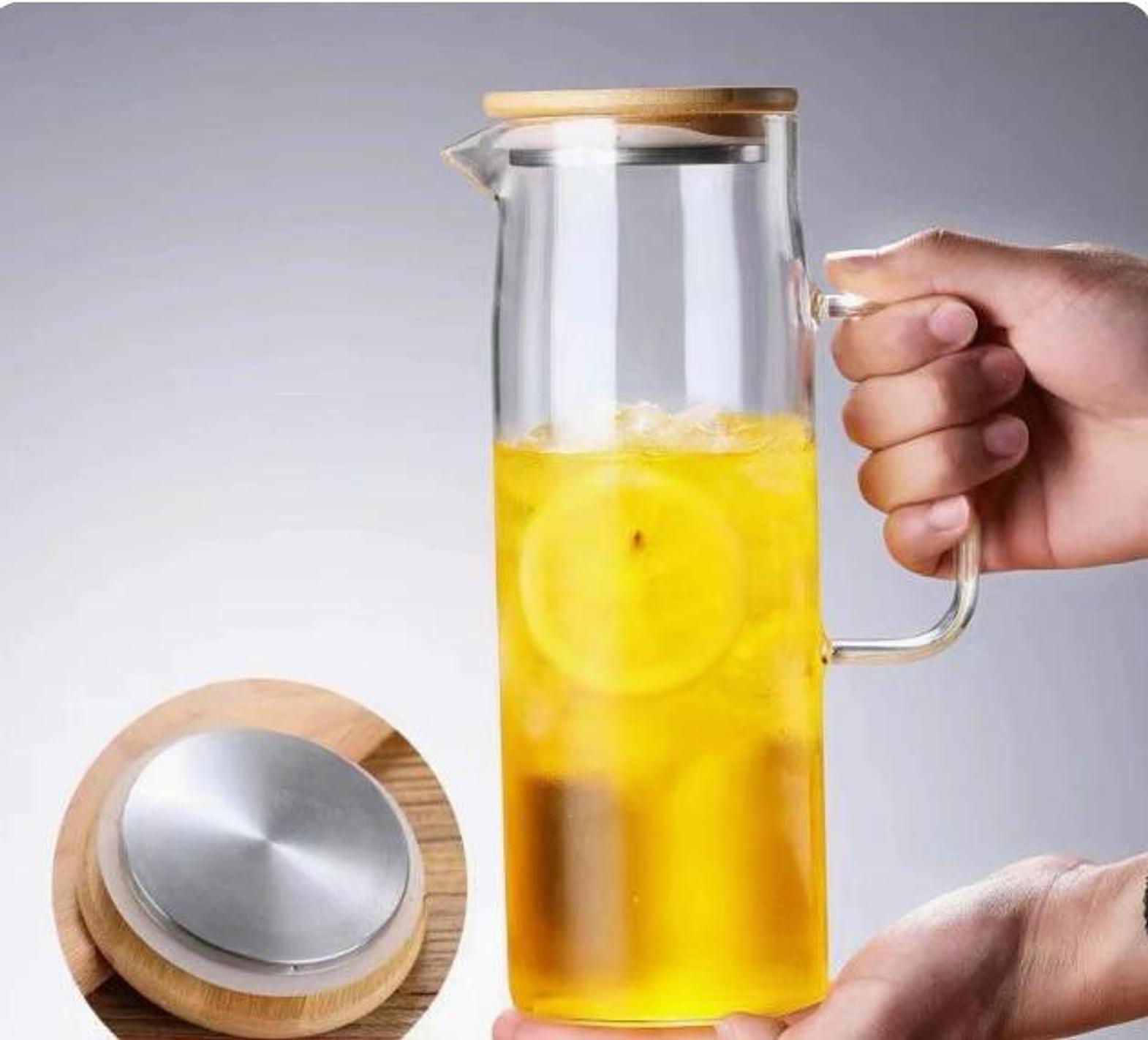 1.5L heat-resistant glass jug for hot and cold drinks. Stylish and durable.
