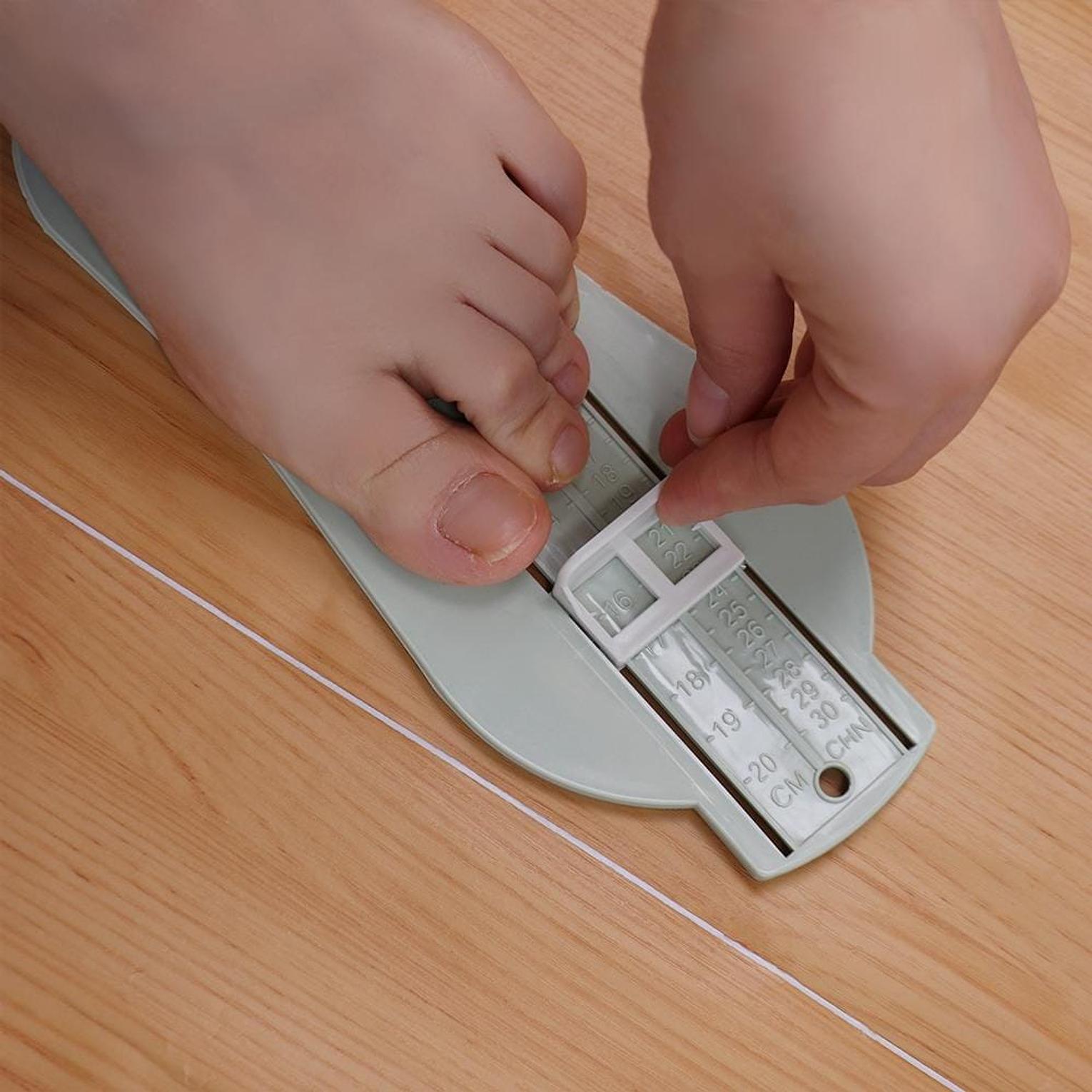 Universal plastic foot measuring gauge for accurately measuring children’s feet to ensure correct shoe sizing and comfort.