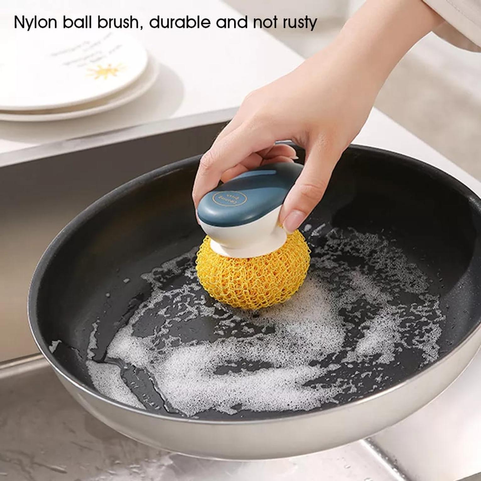 Durable kitchen cleaning ball for scrubbing pots, pans, and surfaces efficiently without rusting.