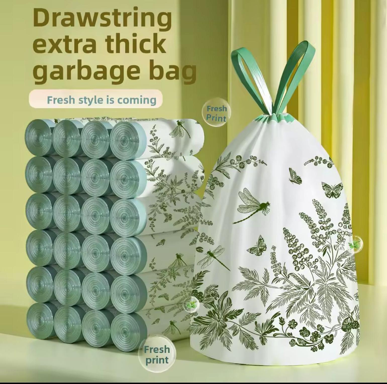 50pcs extra-thick PE kitchen trash bags with drawstring ties tear-resistant, leak-proof, and ideal for food waste and everyday home use.